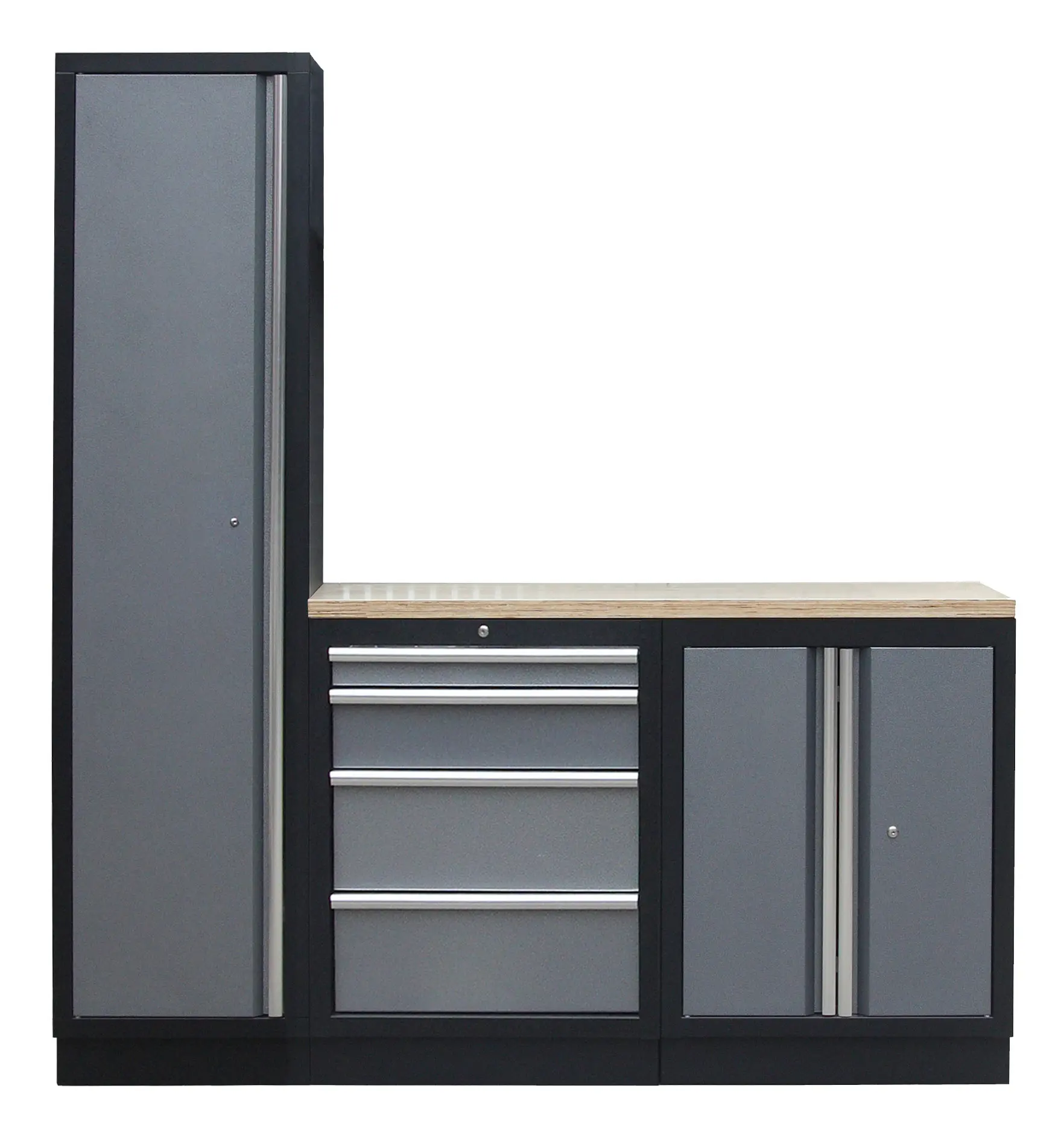 Zostava 4 ks dielenského nábytku PROFI GREY s drevenou pracovnou doskou