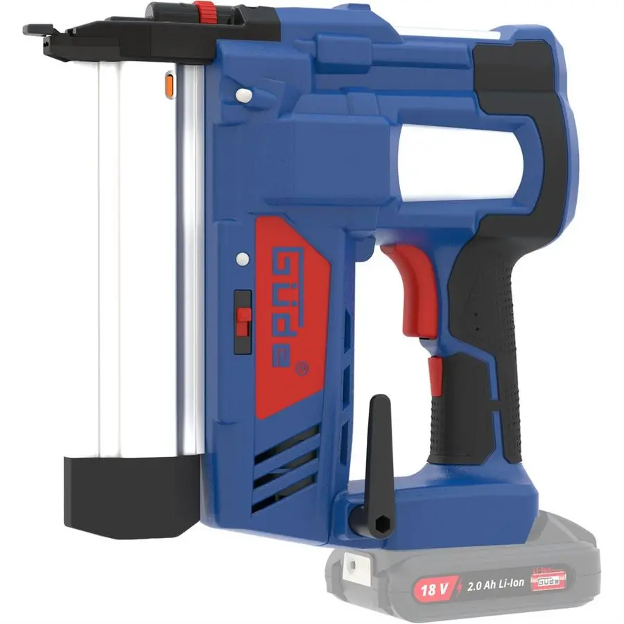 Robustná akumulátorová sponkovačka/klincovačka, určená na spájanie najrôznejších materiálov napevno nastreľovacími sponami alebo klincami.