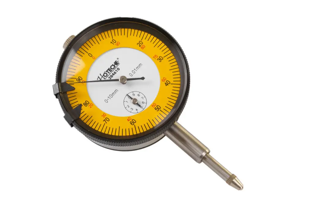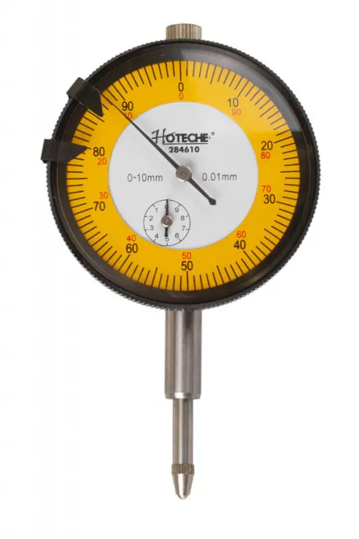 Číselníkový úchylkomer s rozsahom 0 - 10 mm a presnosťou 0,01 mm.