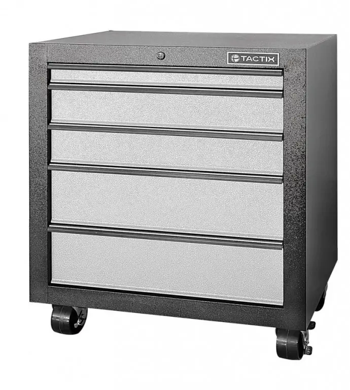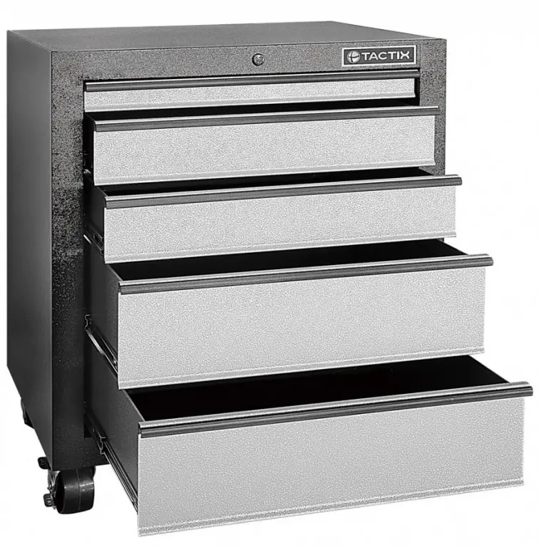Súčasťou vozíka je 5 uzamykateľných zásuviek na uloženie výplní dielenského vozíka s ručným náradím. Zásuvky sú osadené guličkovými ložiskami v pojazdoch, čím sa zvyšuje ich nosnosť bez vplyvu na výbornú vlastnosť výjazdu/ zachádzania.
