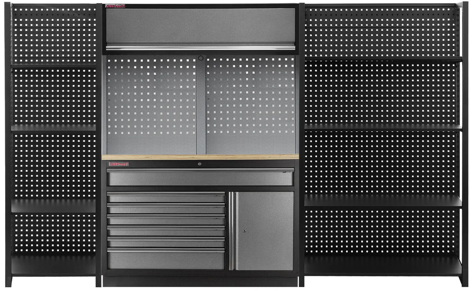 Zostava dielenského nábytku udrží náradie prehľadne upratané na správnom mieste.