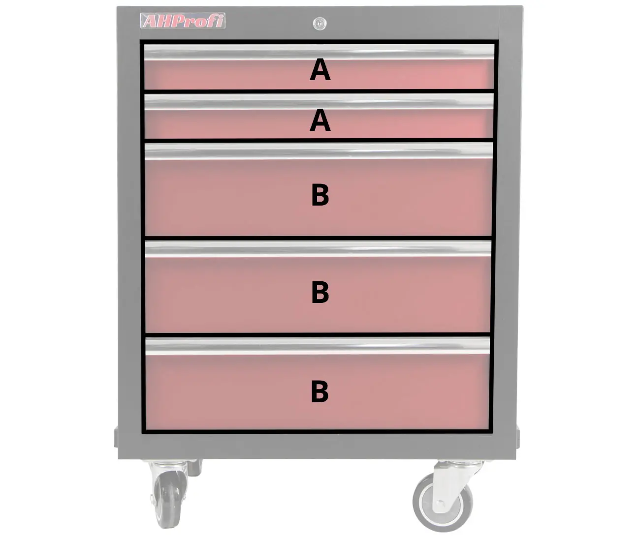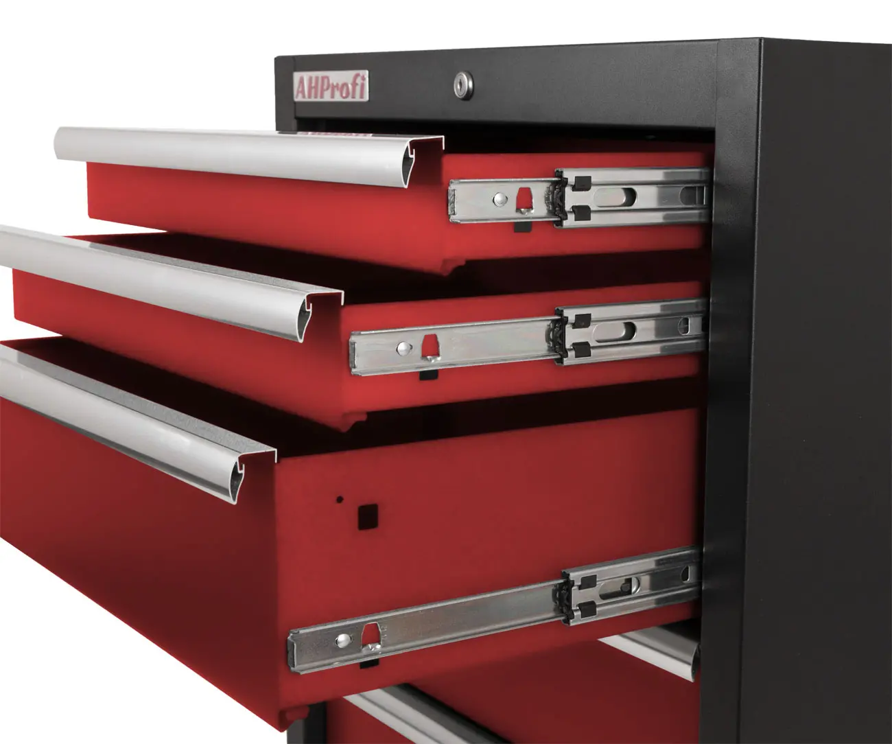 Súčasťou vozíku je 5 uzamykateľných zásuviek pre uloženie výplní dielenského vozíku s ručným náradím. Zásuvky sú osadené guličkovými ložiskami v pojazdoch, čím sa zvyšuje ich nosnosť bez vplyvu na výbornú vlastnosť vychádzania/zachádzania.