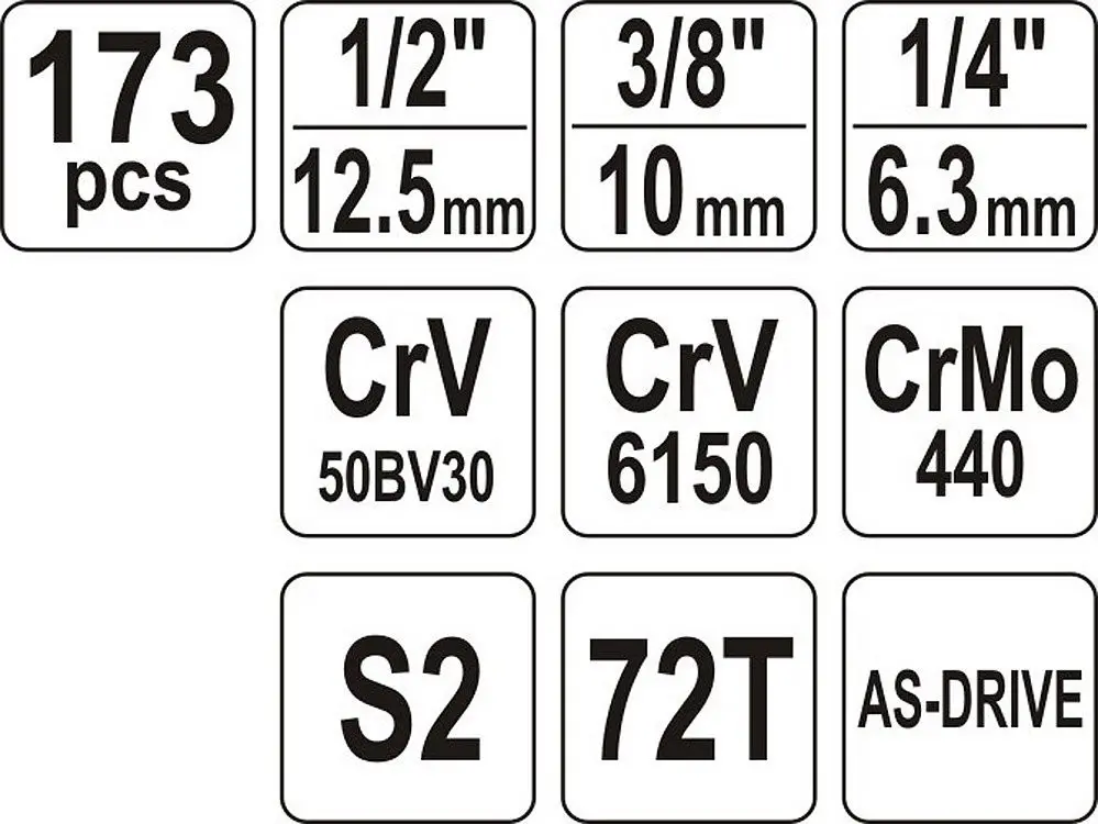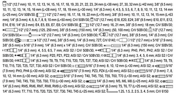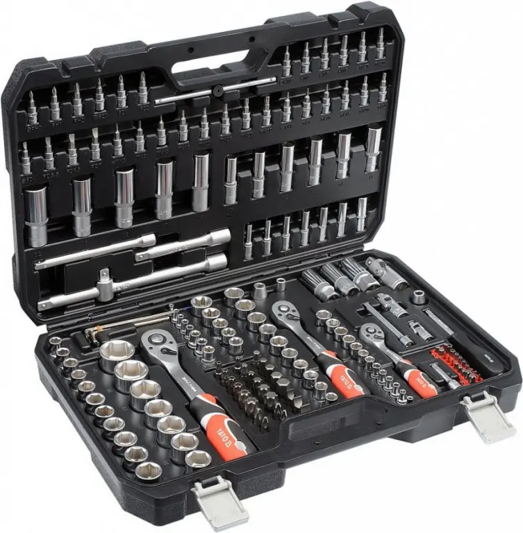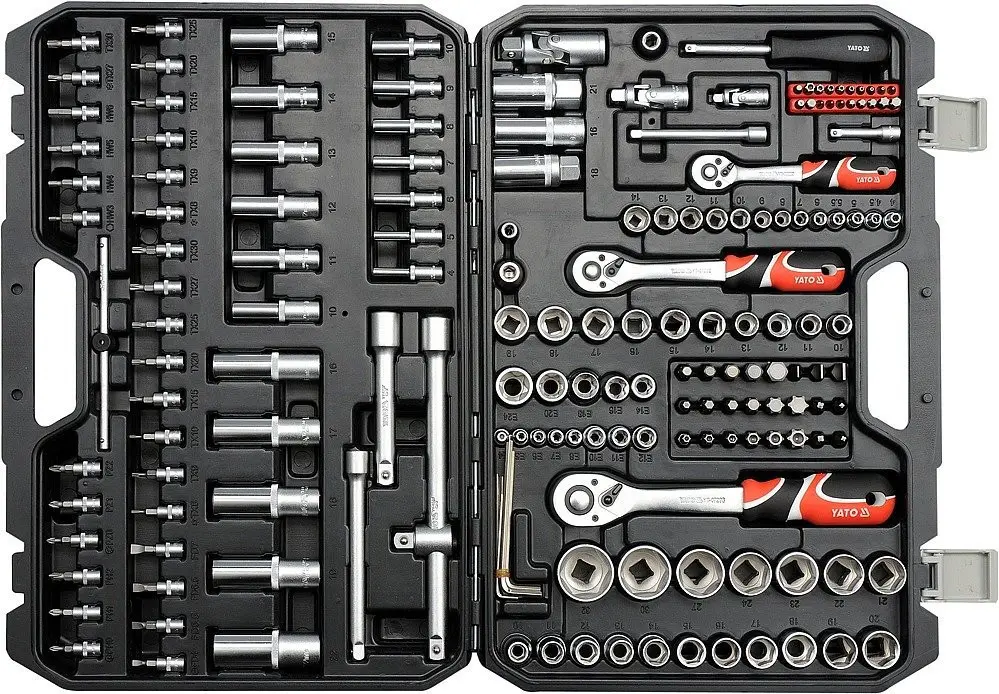 Obsiahla sada nástrčných kľúčov od značky YATO, celkom 173 kusov v plastovom kufri, obsahuje kľúč...