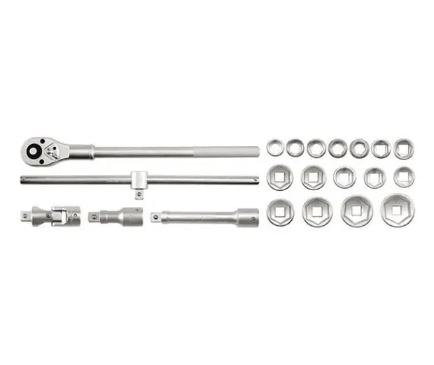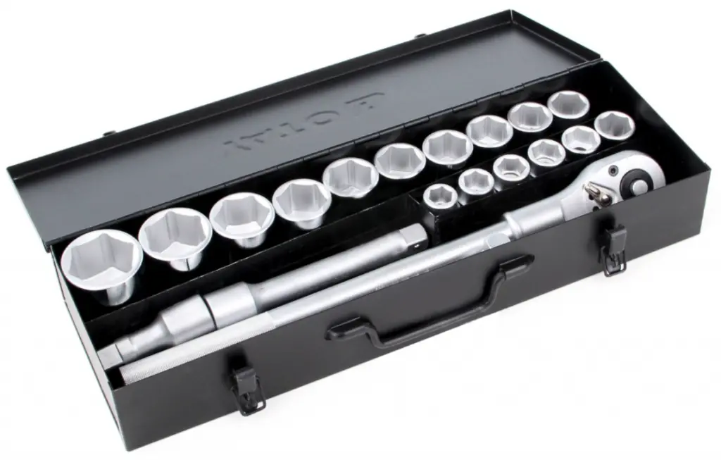 Sada nástrčných kľúčov od značky YATO, 21 kusov, obsahuje račňu, orechy 19-50 mm, kĺbové a predlž...