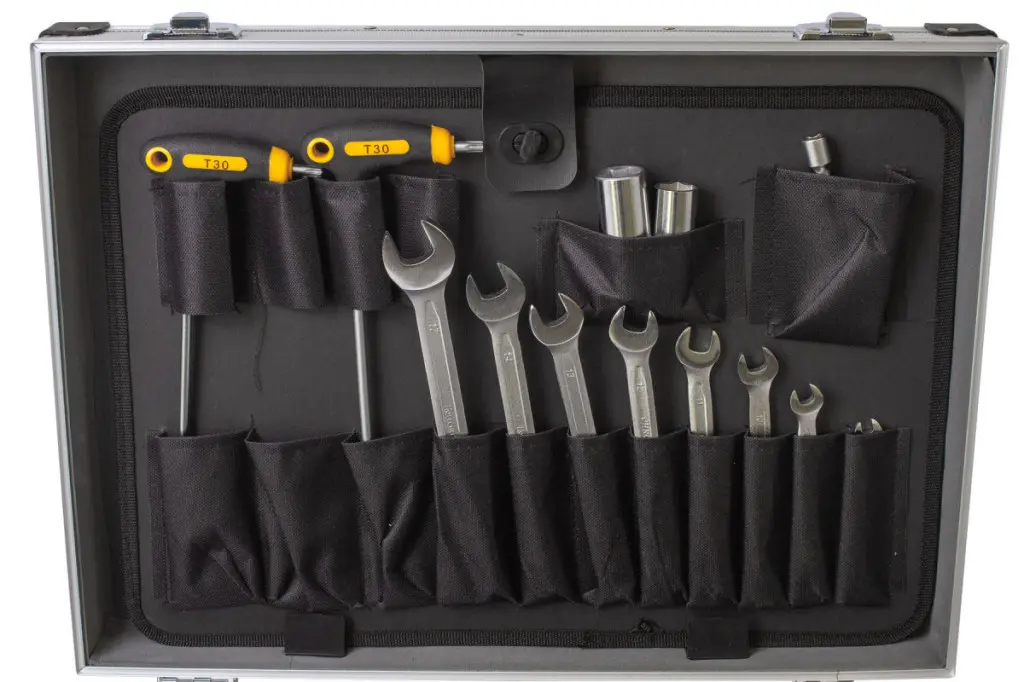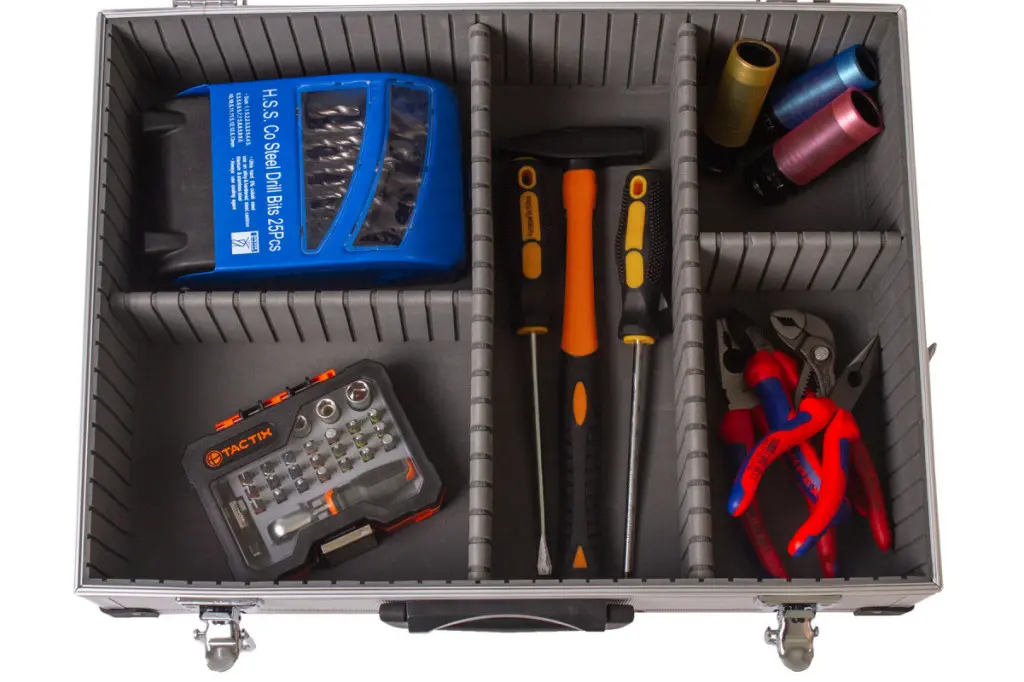 Vrecká u vyberateľnej dosky sú najvhodnejšie na skladovanie rôznych druhov kľúčov, nástavcov, atď. Do skladovacieho priestoru si môžete uložiť napr.: kladivo, svoje obľúbené skrutkovače alebo kliešte, rôzne nástrčné kľúče či sadu bitov a vrtákov.