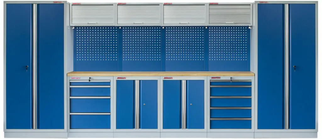 Spodné a vysoké skrinky sú uzamykateľné. Či už plánujete zostavu do domácnosti alebo do práce, vaše náradie bude v bezpečí pred nezvanými hosťami.