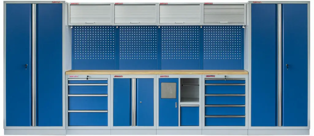 Spodné a vysoké skrinky sú uzamykateľné. Či už plánujete zostavu do domácnosti alebo do práce, vaše náradie bude v bezpečí pred nezvanými hosťami.