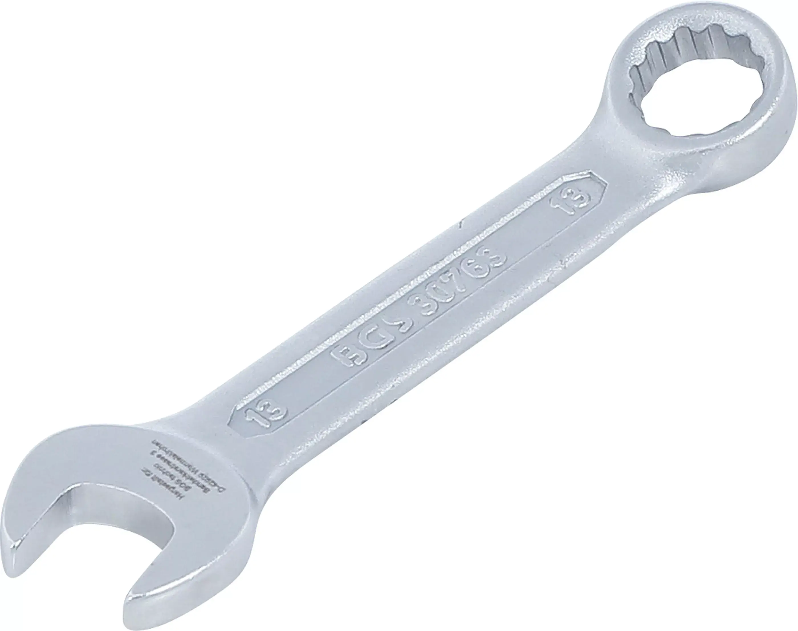 Očkoplochý kľúč 13 mm, extra krátky, kovaný za studena, matne chrómovaný, u očka s vyhnutím 15 °,...