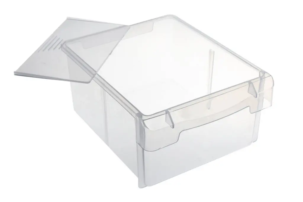 Plastový organizér so štyrmi veľkými priehľadnými boxami.