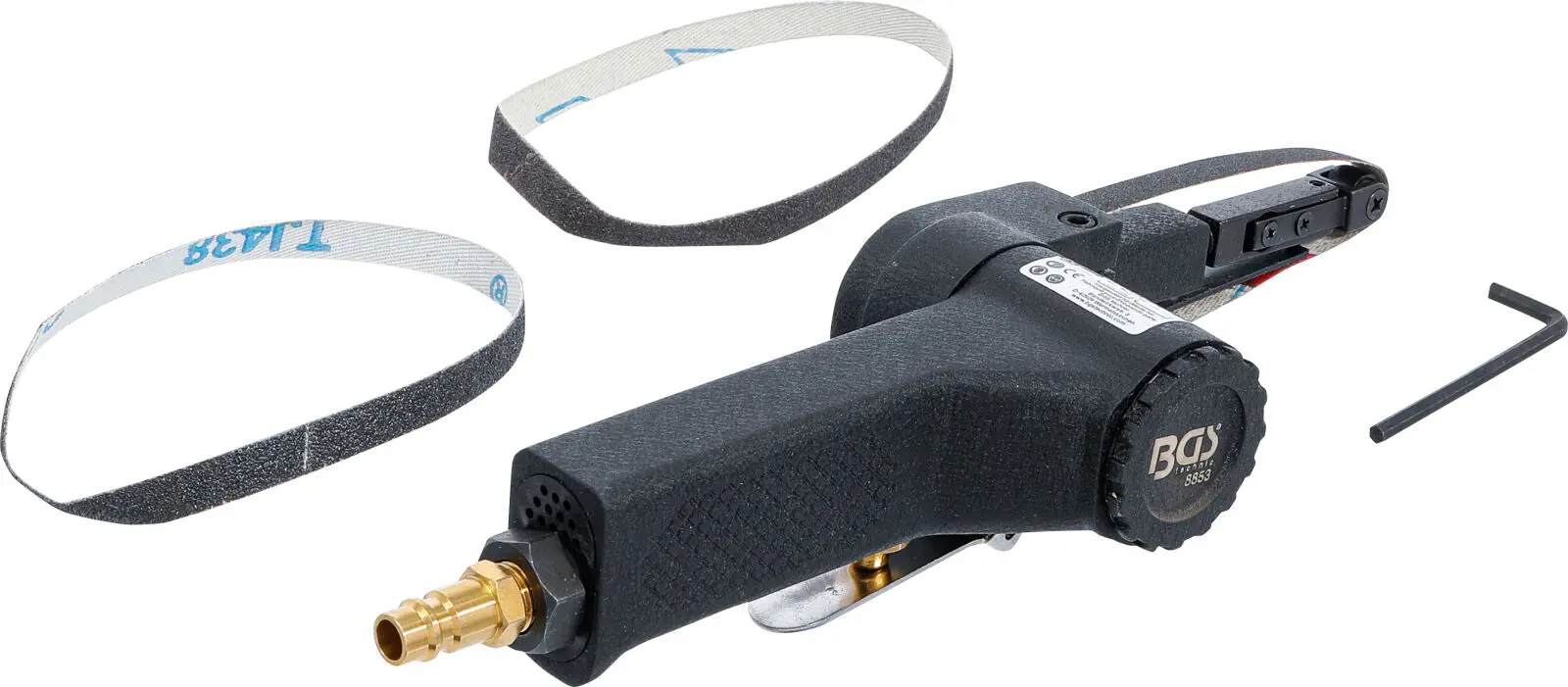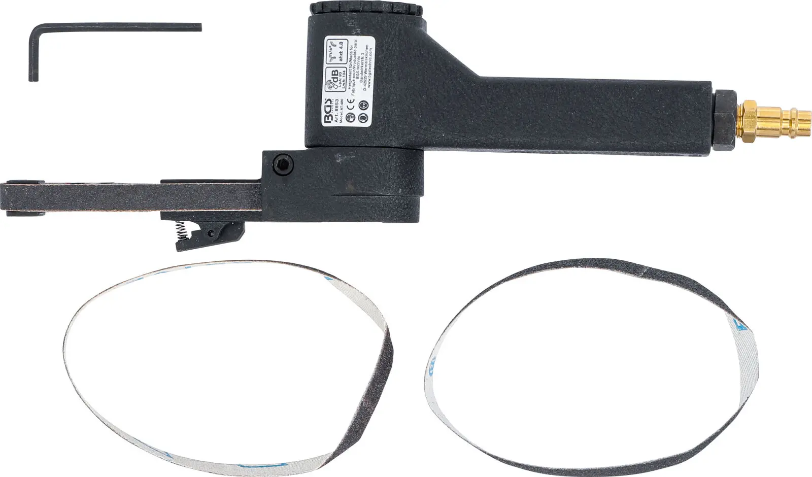 Pneumatická pásová brúska na brúsenie malých plôch, čistenie brzdových strmeňov pri výmene brzdových doštičiek a pod.