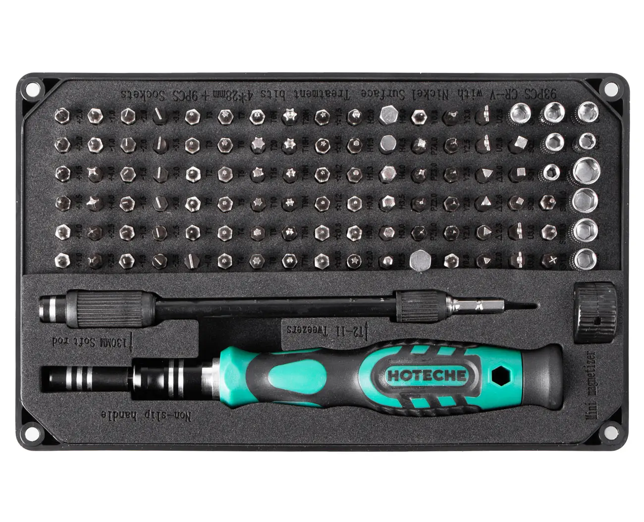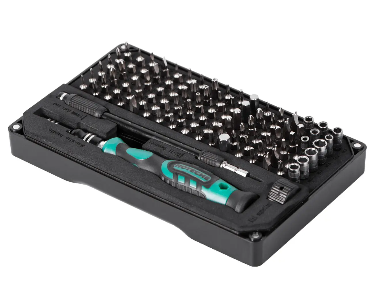 Obsahuje široký výber bitov vrátane krížových, plochých, Torx, Pentalobe, šesťhranných, trojuholníkových a ďalších špeciálnych profilov.
