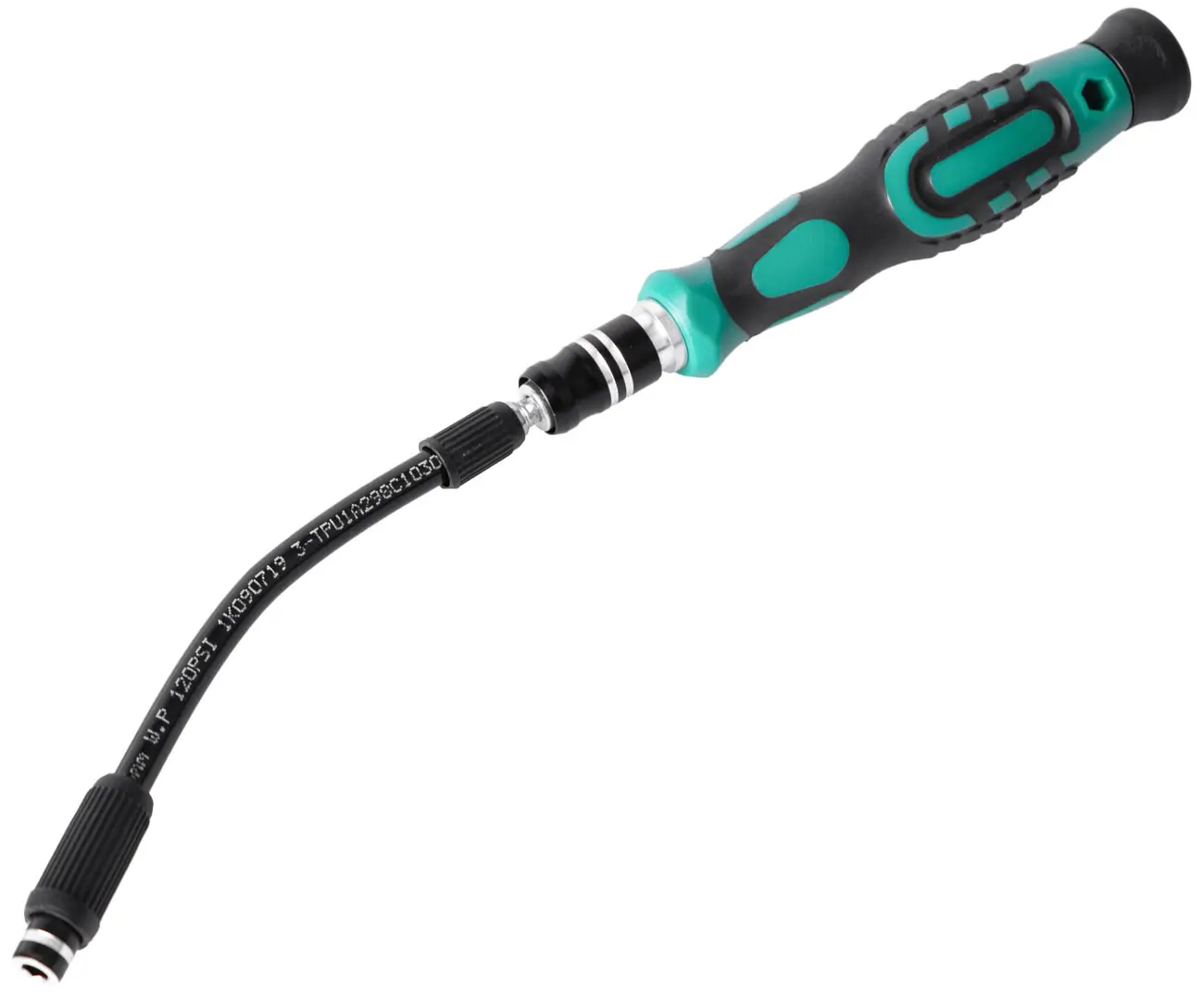 Sada je doplnená o 13 cm dlhý ohybný predlžovací nadstavec, magnetizér, nerezovú pinzetu a držiak bitov s protišmykovou rukoväťou.
