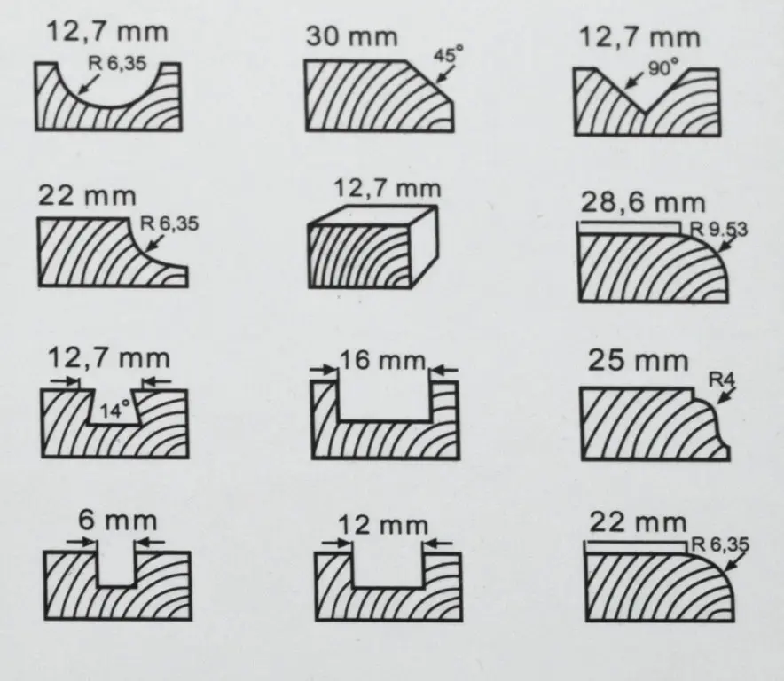 Sada 12tich kvalitných tvarových fréz do dreva s priemerom stopky 8mm, ktorá príde vhod každému pracovníkovi s frézkou.