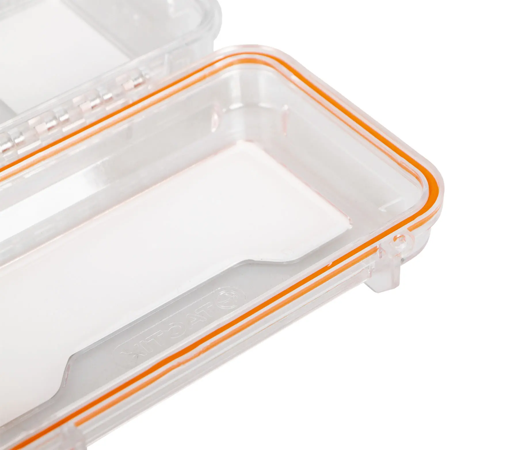 Vodotesné plastové puzdro s pútkom na zápästie. Rozmery: 188 x 113 x 47 mm.