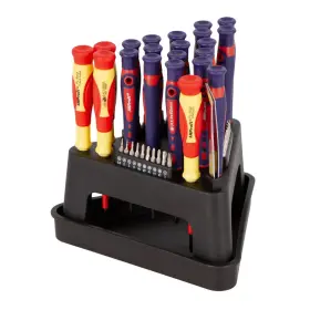 Skrutkovače na podstavci, sada 52 ks, obsahuje 16x presné skrutkovače, 4x VDE skrutkovače, 30 bit...
