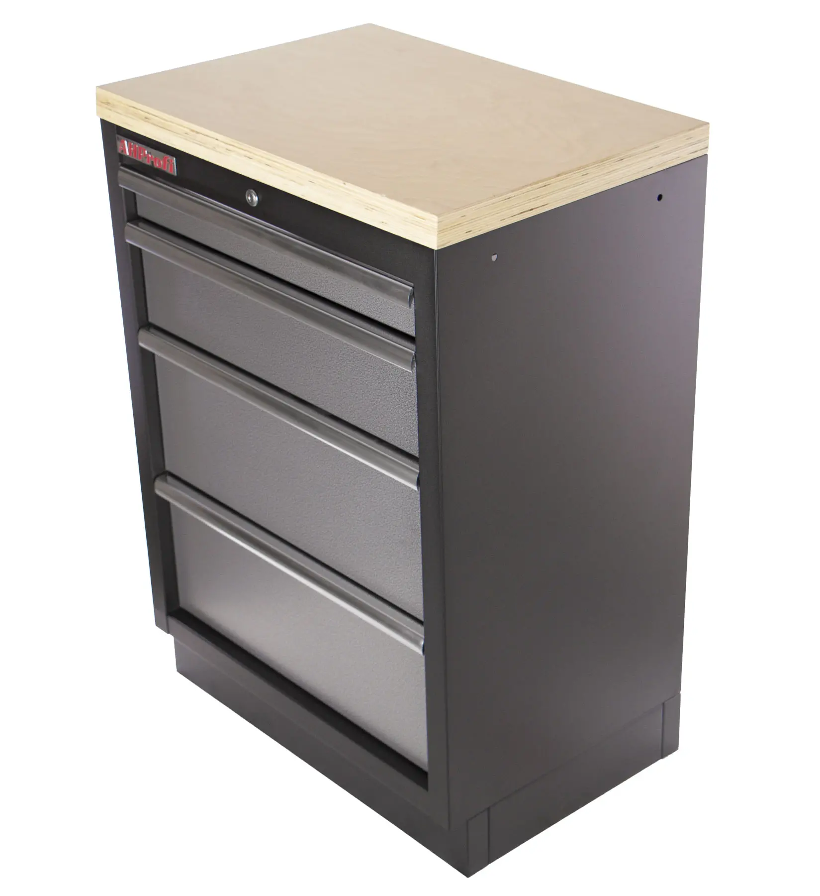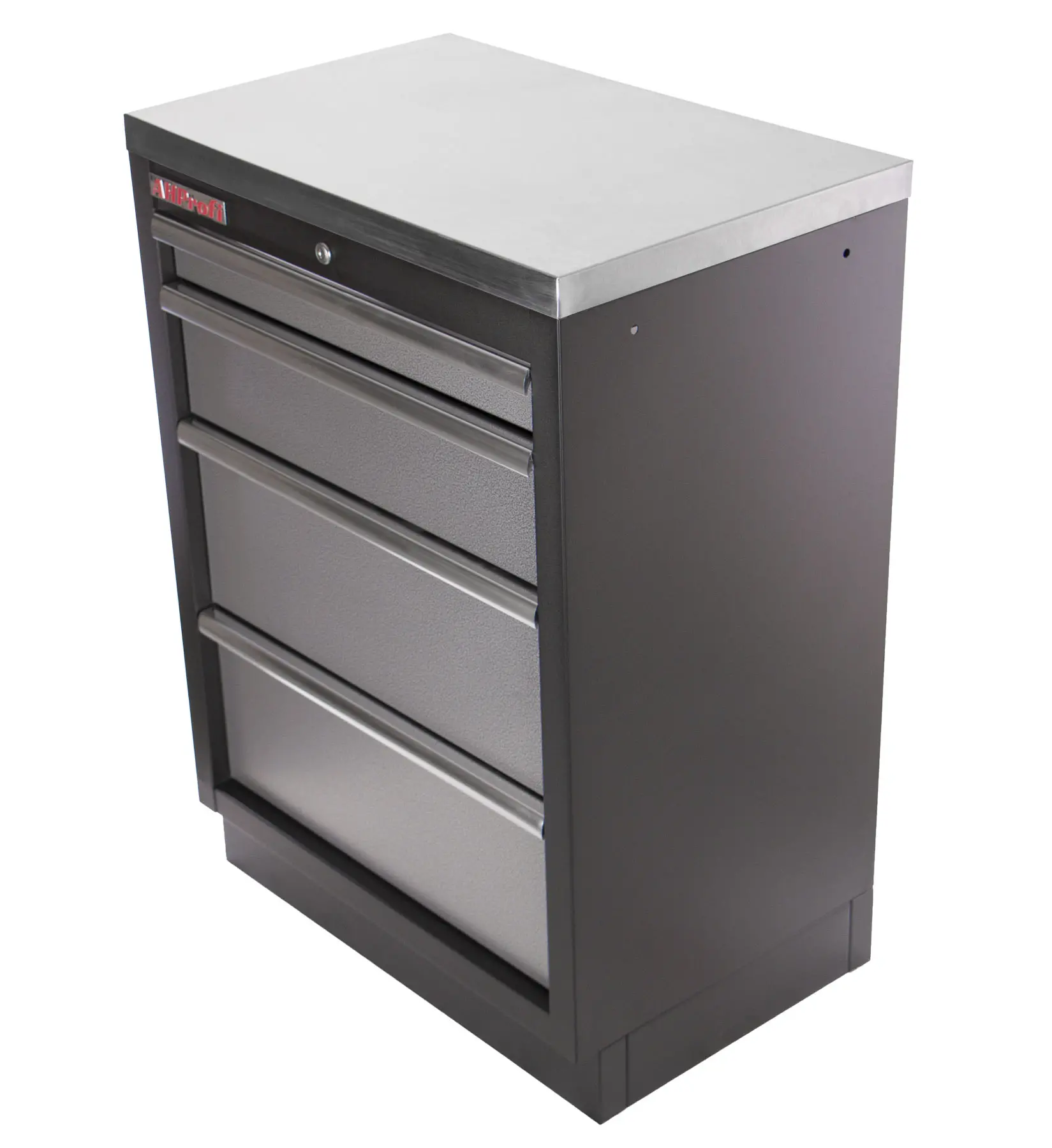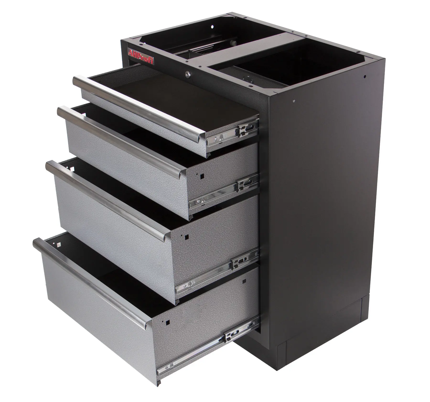 Celokovová PROFI dielenská skrinka so 4-mi zásuvkami. Predáva sa aj v rámci kvalitnej PROFI 10ks zostavy dielenského nábytku TGS1300 alebo menších zostavách. Skrinka je vhodná do profesionálnych servisov, dielní, ale aj do garáží pre uskladnenie širokého sortimentu tovaru aj ručného náradia, na ktoré sa potom nepráši a ľahšie sa udrží prehľadne upratané na správnom mieste.