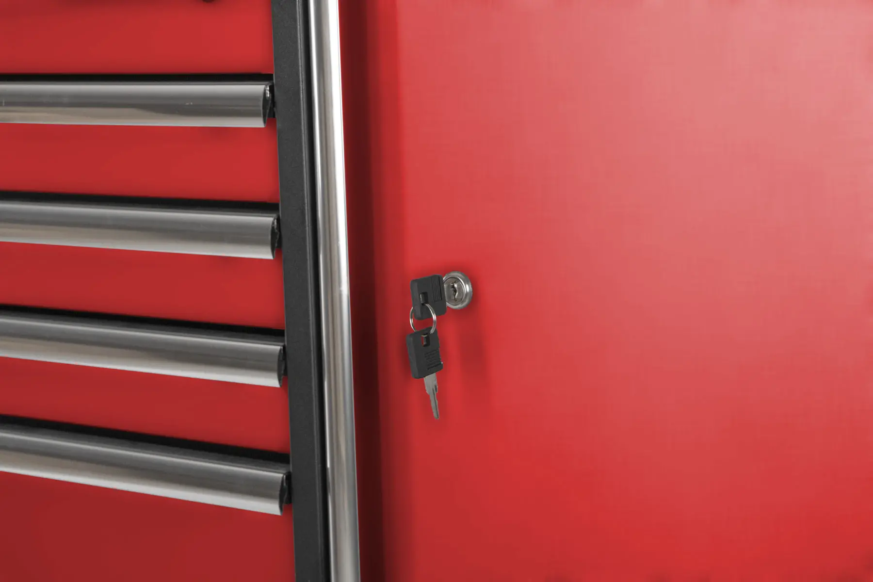 Skrinka aj všetky zásuvky sú uzamykateľné.