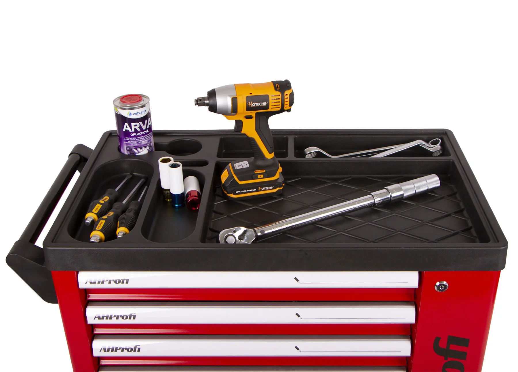 Vozík má 7 šuplíkov, do ktorých môžete umiestniť výplne alebo náradia.