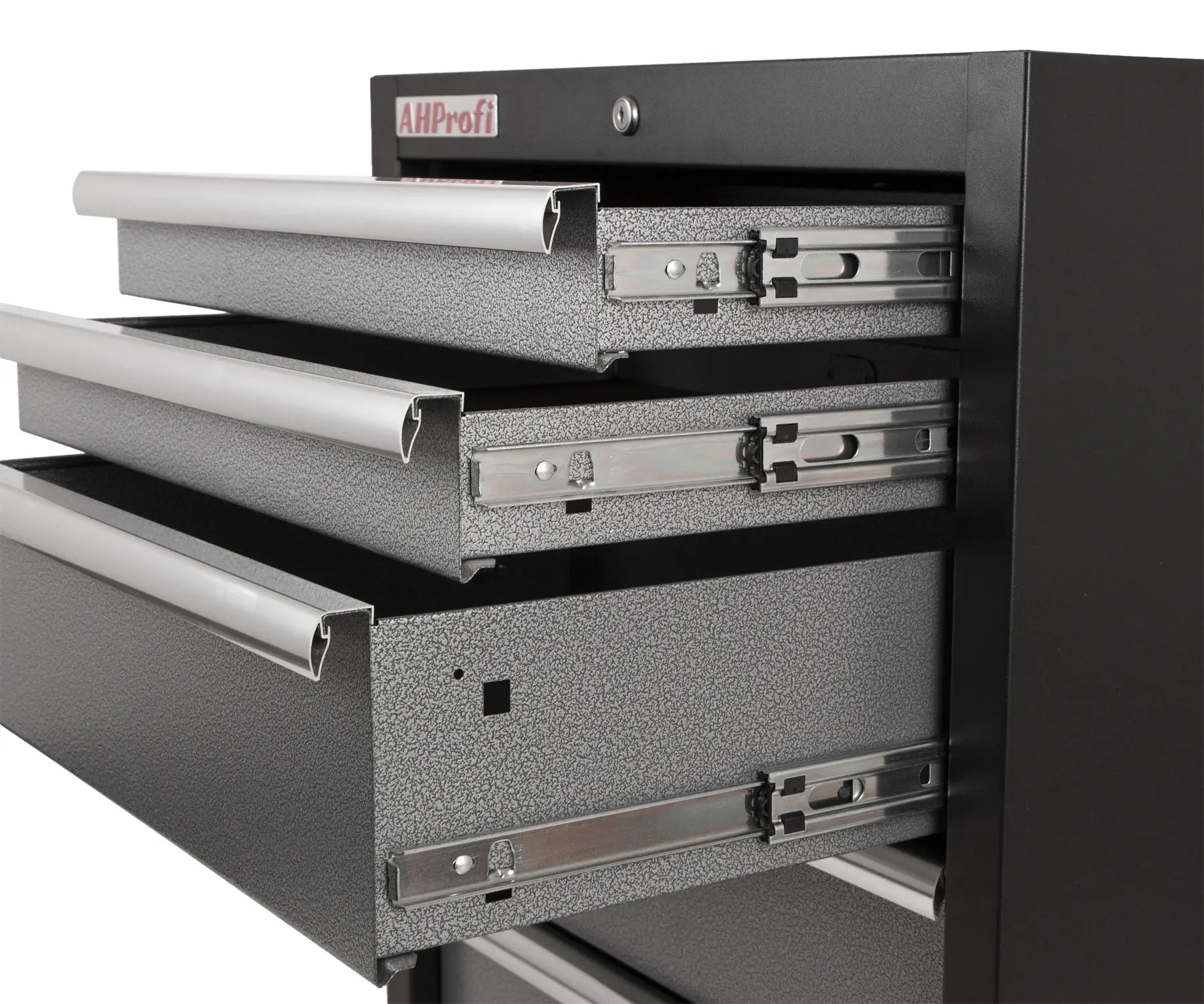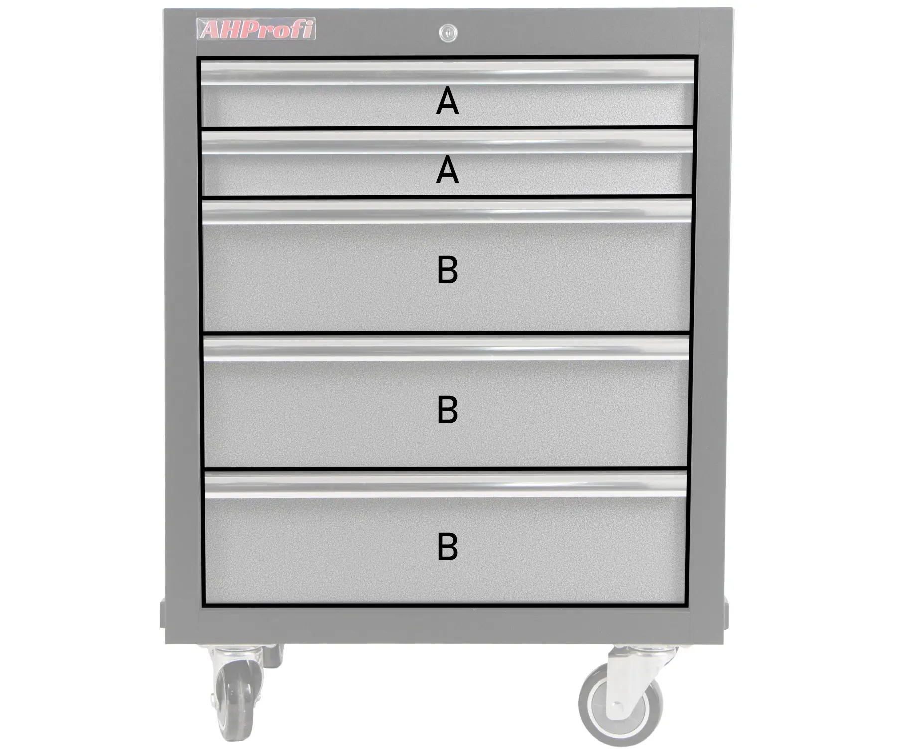 Súčasťou vozíka je 5 uzamykateľných zásuviek pre uloženie výplňou dielenského vozíka s ručným náradím. Zásuvky sú osadené guličkovými ložiskami v pojazdoch, čím sa zvyšuje ich nosnosť bez vplyvu na výbornú vlastnosť vysúvania/zasúvania.