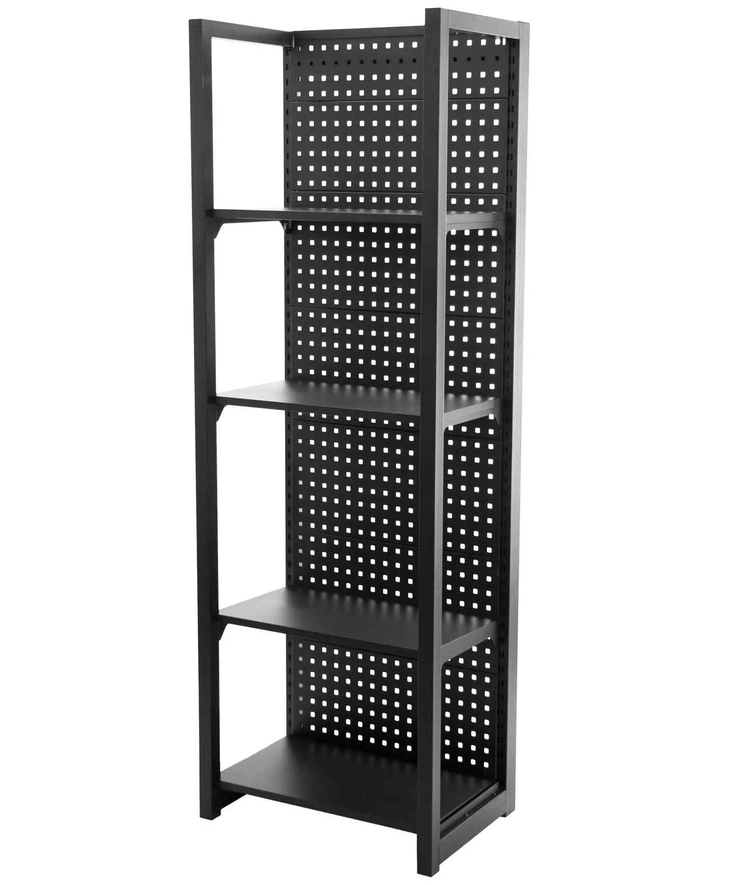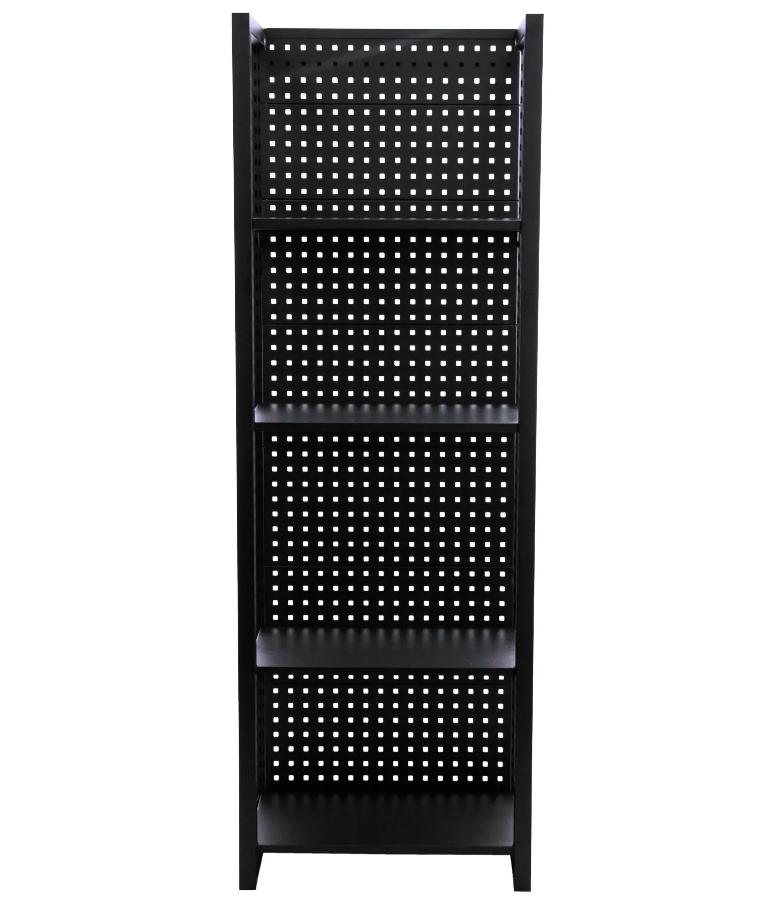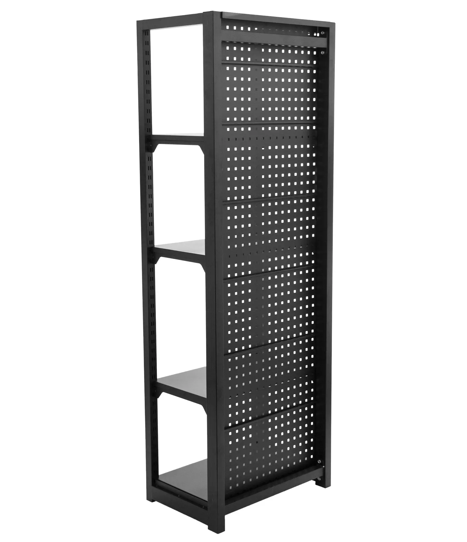 Policový regál so zadnou dierovanou doskou, 4 police, rozmery 680 x 458 x 2000 mm.