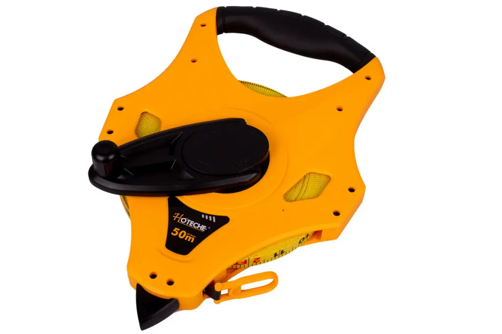 Meriace pásmo o dĺžke 50 metrov značky Hoteche so sklopnou kľučkou pre rýchle navíjanie využijete pri vymeriavaní väčších plôch, na stavbách, záhradkách a pod.