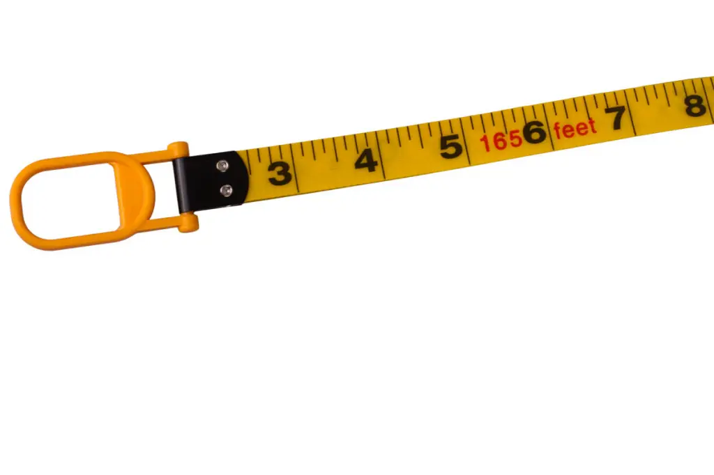 Pásmo je obojstranné. Z hornej strany je metrická stupnica v milimetroch, centimetroch a metroch, zo spodnej angloamerickej stupnice v palcoch a stopách.  Meracia páska je zakončená plastovým okom pre uchytenie
