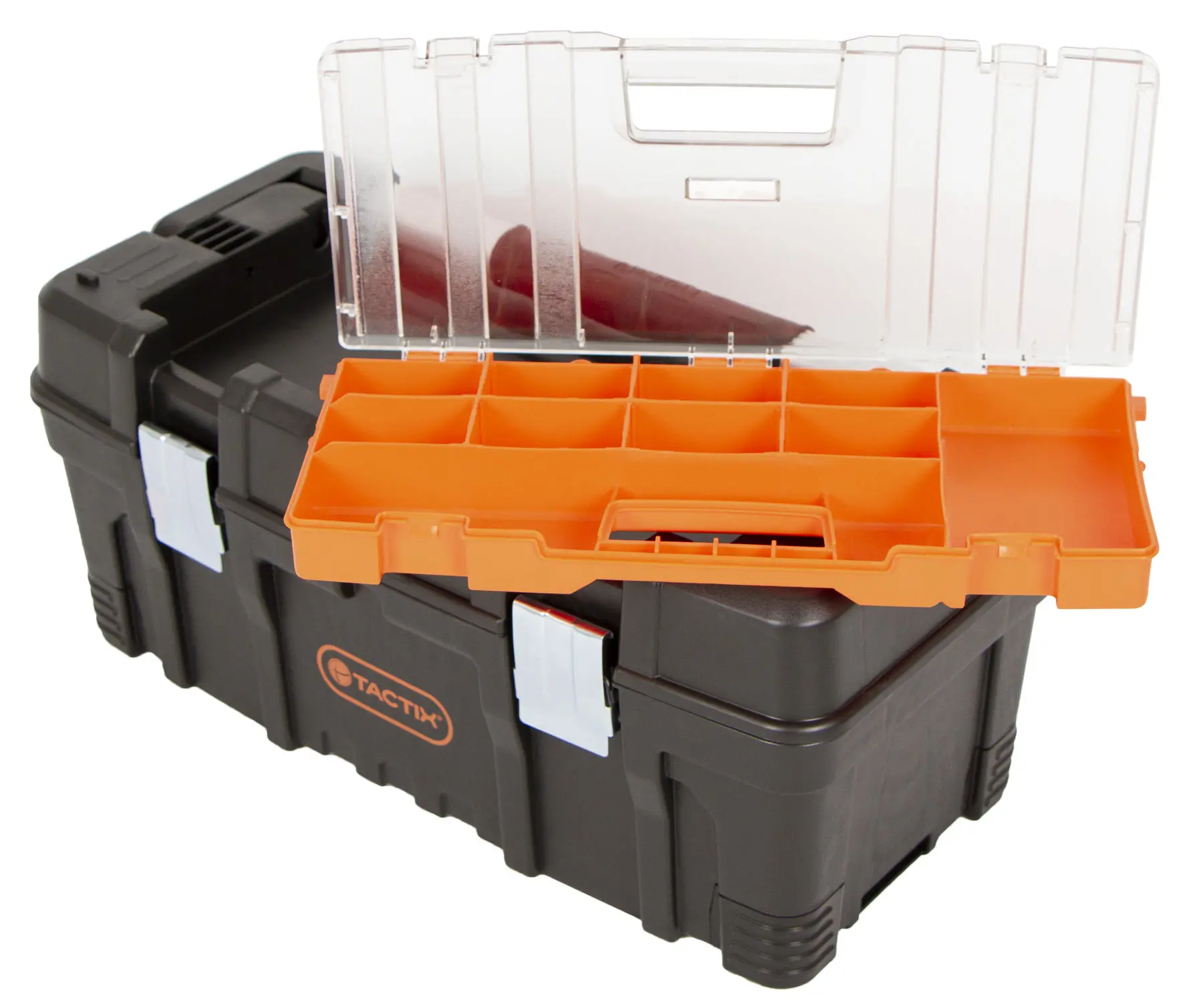 Vrchný box je odnímateľný pomocou bočných západiek a vybavený organizérom na drobnejší materiál (skruky a pod.), ktorý je možné ľahko vybrať.