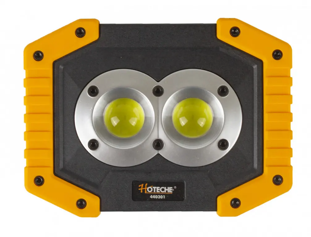 Odolné pracovné LED svietidlo od značky Hoteche s výkonom 10 W, ktoré nájde mnoho využití v rôznych dielňach, garážach alebo napríklad aj pri kempovaní a pod.