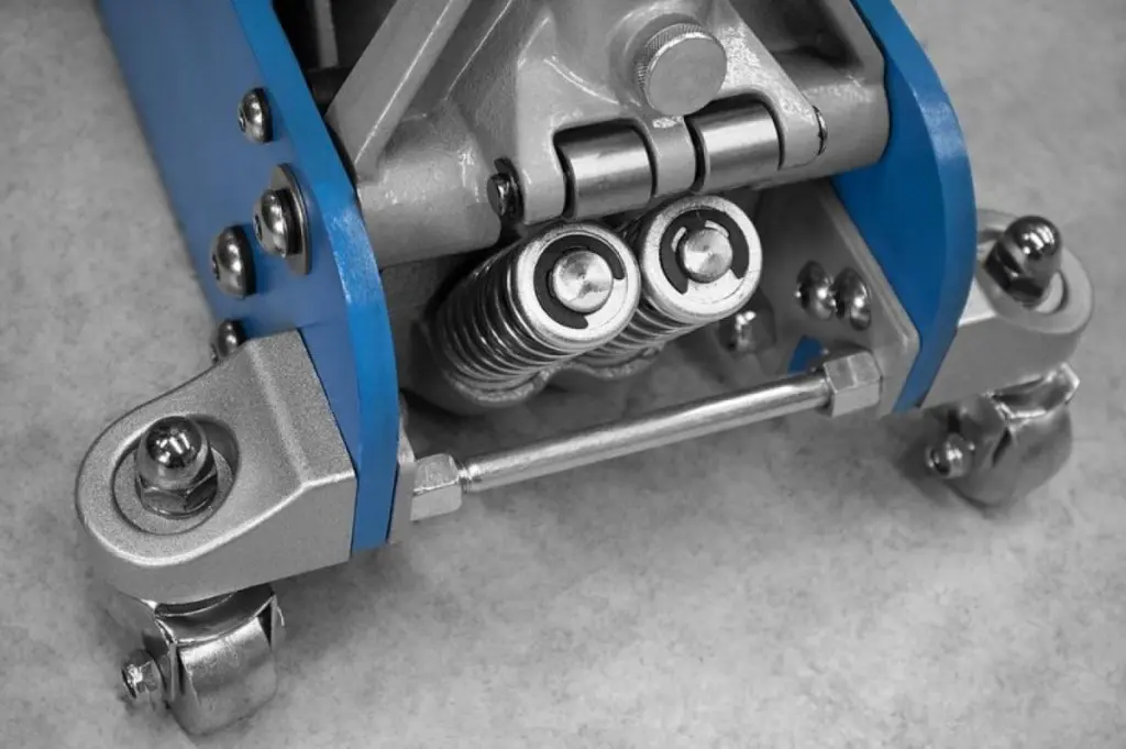 Hybridní konstrukce (→ pevný hliníkový rám, ocelová zvedací jednotka), zdvojený tlačný píst (→ zrychlený zdvih).
