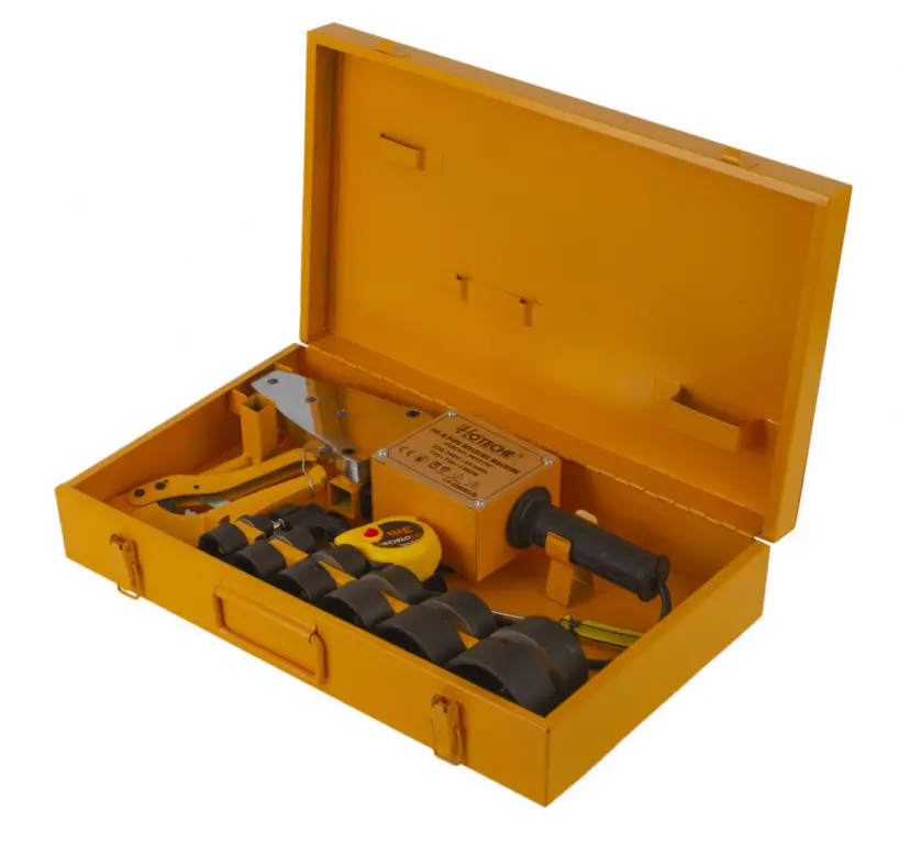 Polyfúzna zváračka plastových trubiek 1500 W. 6 ks nástavcov: Ø 20, 25, 32, 40, 50 a 63 mm.