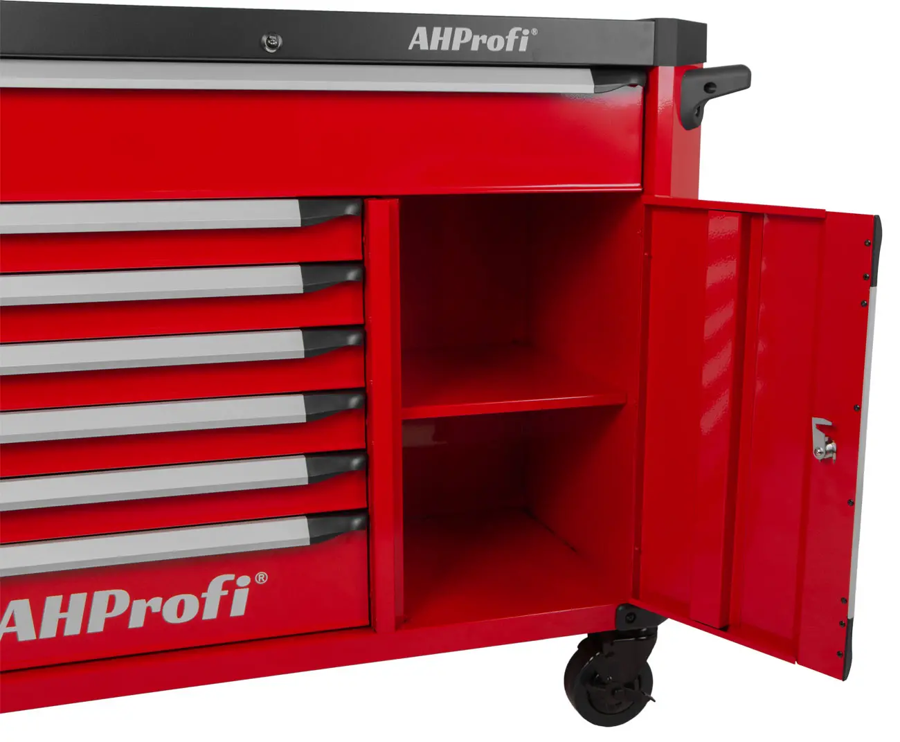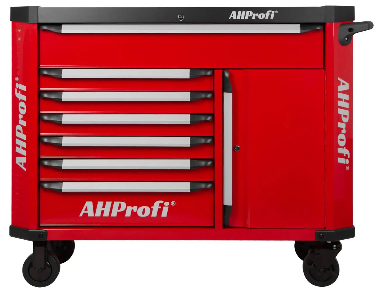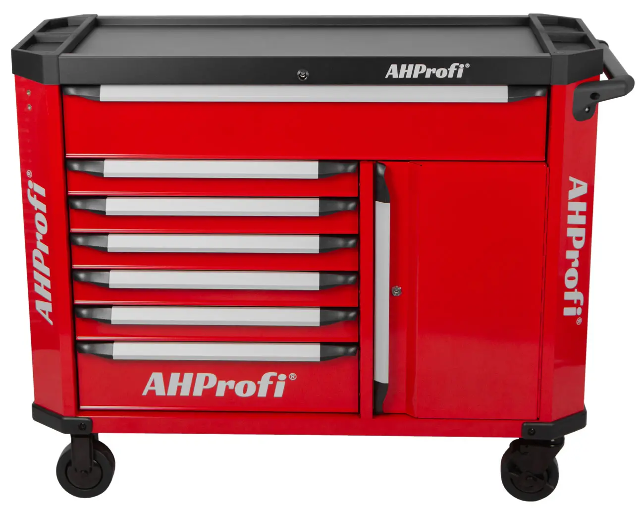 Tento pojazdný kovový dielenský vozík so 7 zásuvkami a skrinkou na náradie, s celkovými rozmermi (š x h x v) 1190 mm x 459 mm x 818 mm (bez koliesok), ponúka dostatok úložného priestoru aj pre náročných používateľov.