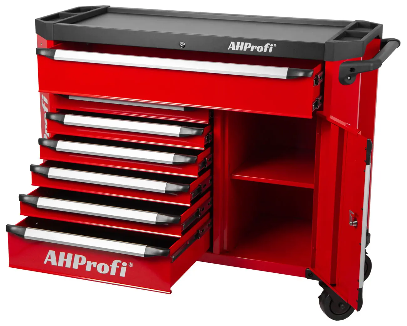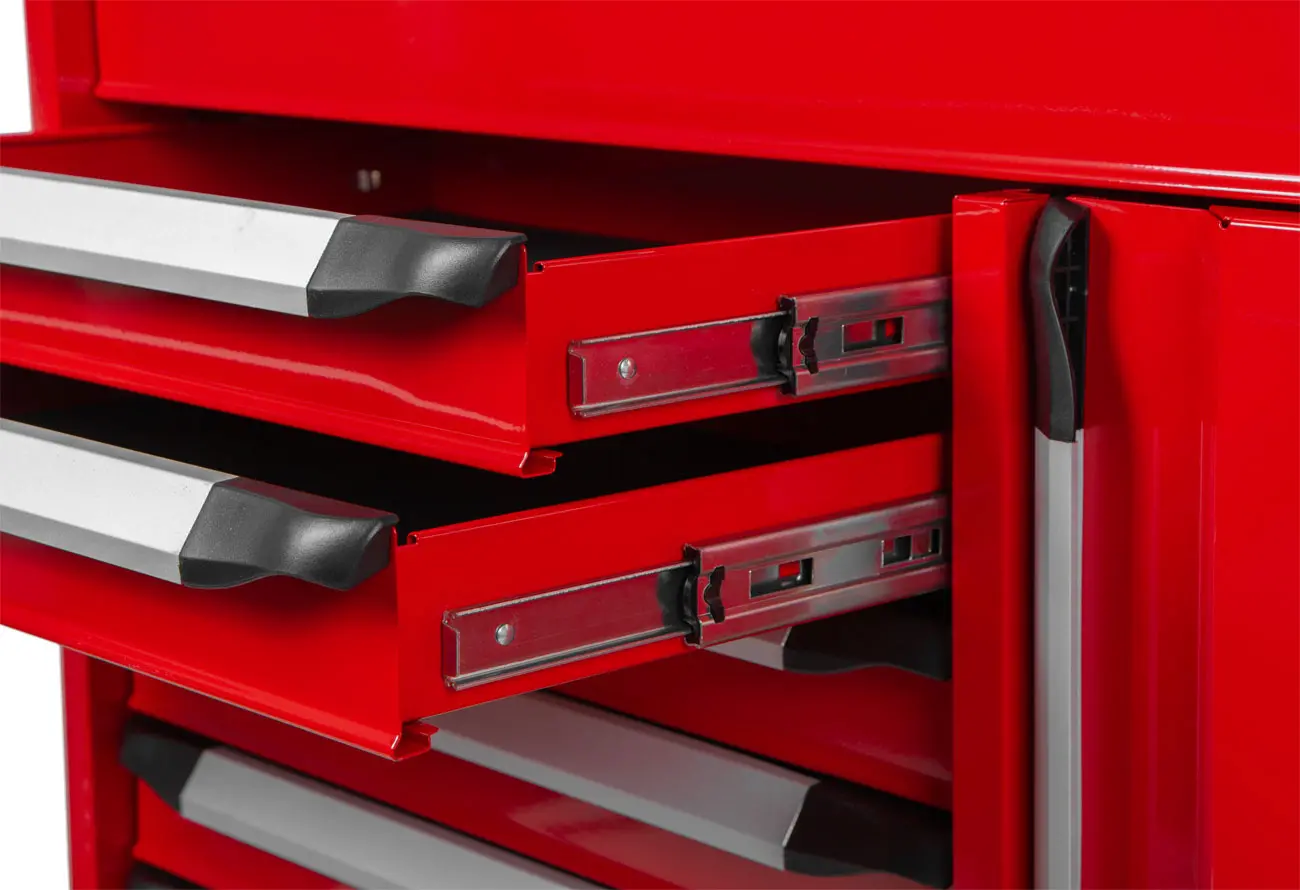 Vozík disponuje 7 zásuvkami rôznych veľkostí, čo umožňuje prehľadné usporiadanie náradia: