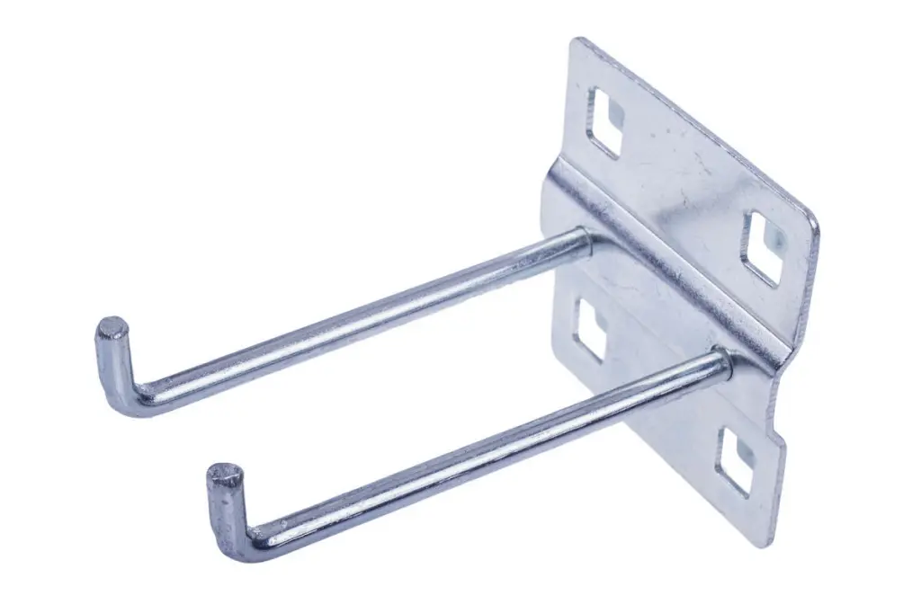 Dvojitý hák dlhý 87 mm je určený pre dierované dosky s roztečí 38 x 38 mm. Pripevnením na perforovaný panel je možné rozšíriť úložný priestor aj pre zostavy dielenského nábytku, dielenské vozíky s náradím aj bez náradia, pracovné stoly aj policové regály.