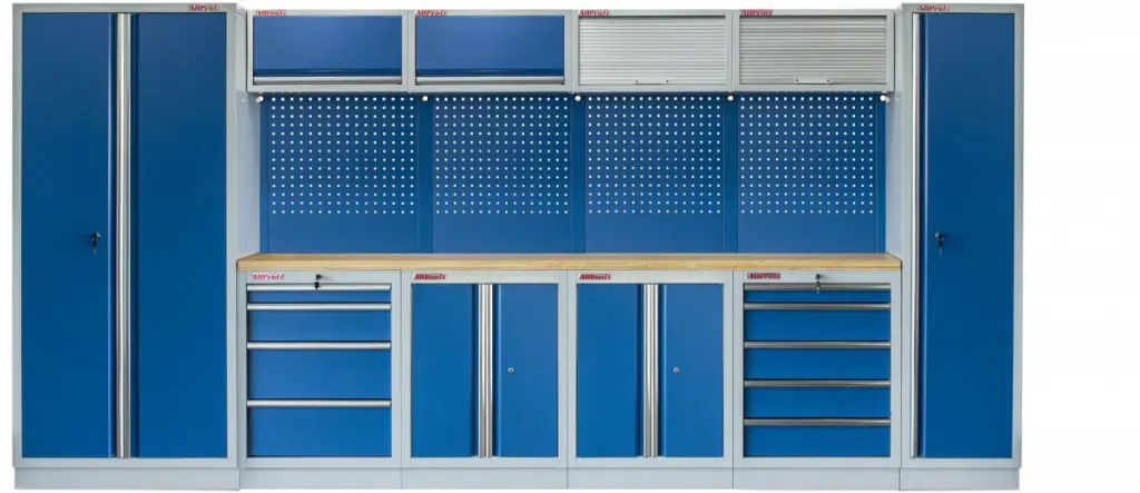 Zostava nábytku v sebe skrýva dostatočné množstvo úložného priestoru pre vaše náradie, autotechniku aj dielenské vybavenie. V kombinácii s robustnou pracovnou doskou získate multifunkčnú stenu, s ktorou vám práca pôjde od ruky vo všetkých smeroch.