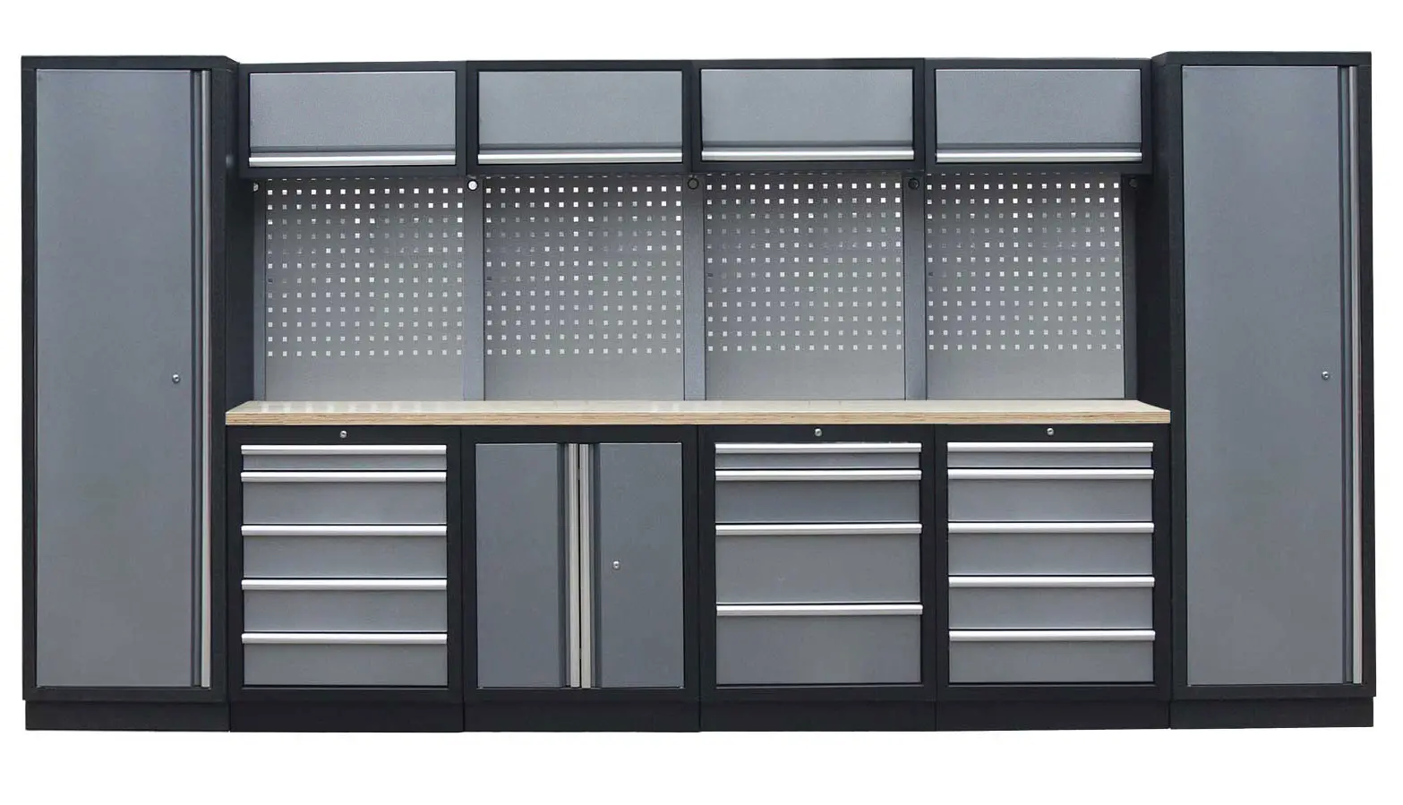 Spodné skrinky sú uzamykateľné. Či už plánujete zostavu do domácnosti alebo do práce, vaše náradie bude v bezpečí pred nepozvanými hosťami.