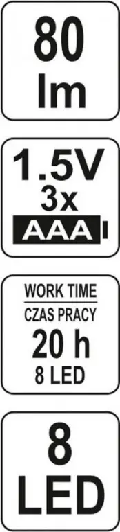 Lampa ručná 8 LED, s klipom, 80 lm - YT-08514