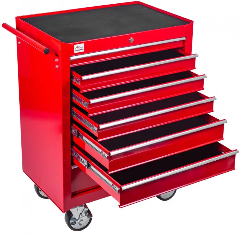 Profesionálny montážny vozík z oceľového plechu, 7 uzamykateľných zásuviek, 4 kolieska, špeciálna...