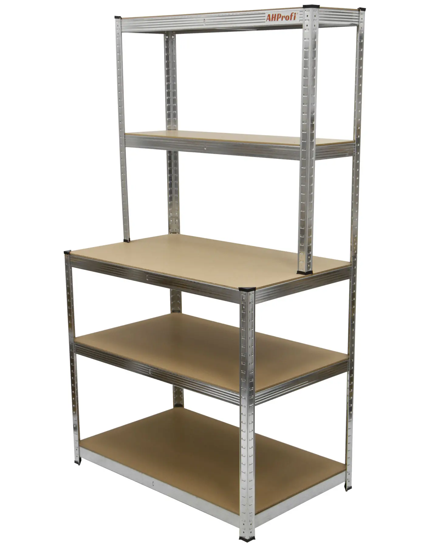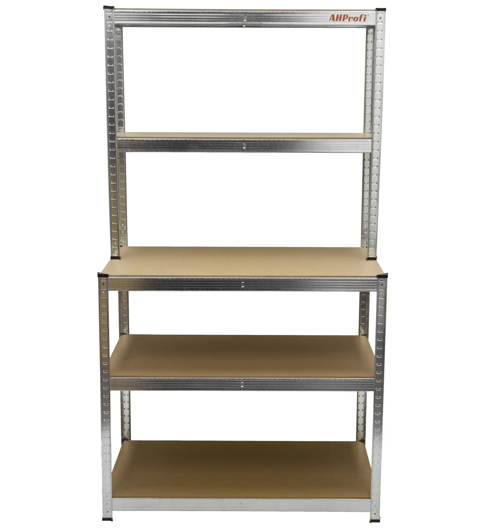 Unikátne spojenie policového regálu a pracovného stola je skvelou voľbou pre dielne, garáže, technické miestnosti, ale svoje využitie nájde aj v domácnostiach, obchodoch a skladoch.