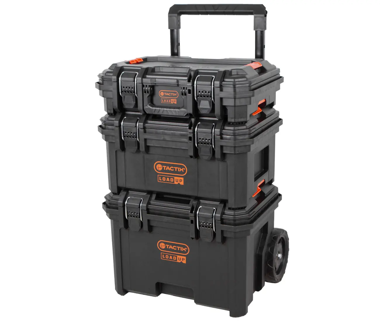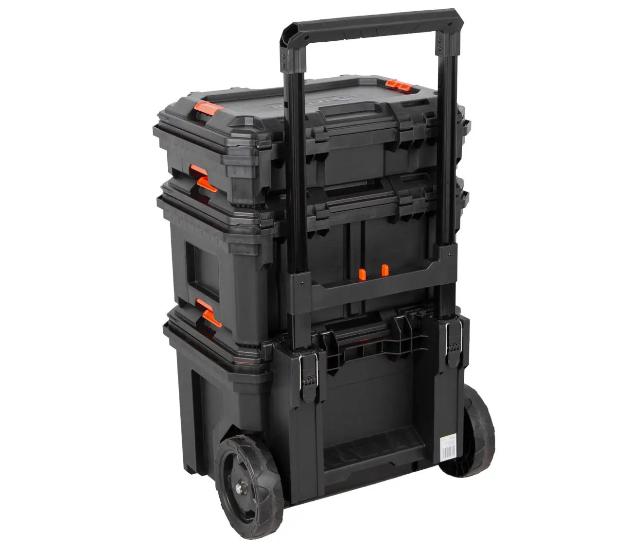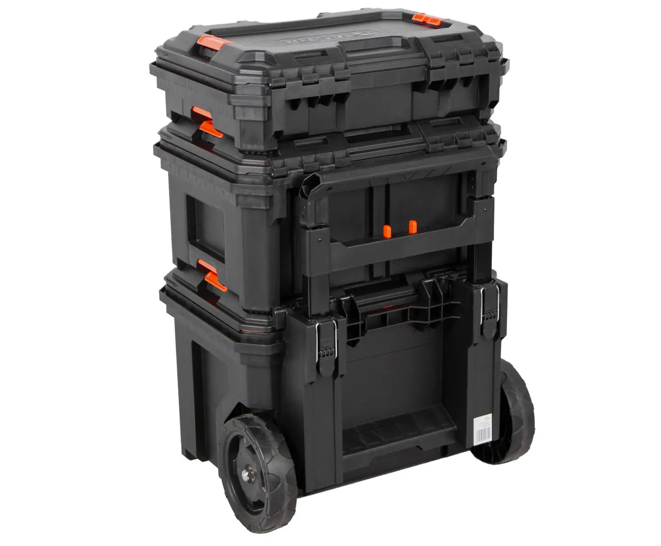 Tento úložný systém ponúka 3 stohovateľné kufre, každý s unikátnymi vlastnosťami a veľkým úložným priestorom.