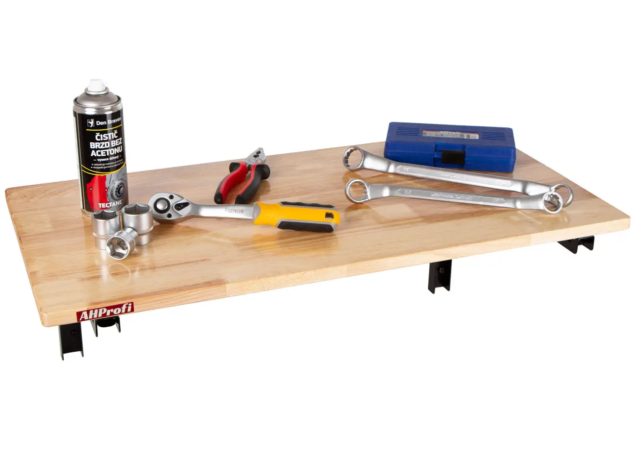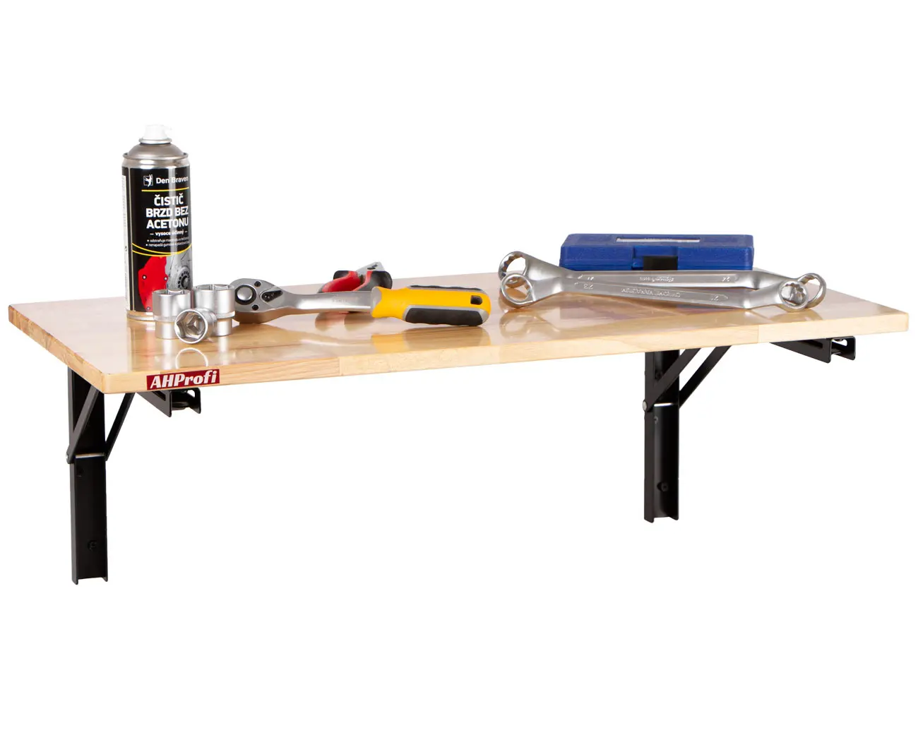 Sklopný pracovný stôl 800 x 400 mm, hrúbka 18 mm, nosnosť 70 kg. Drevená pracovná doska, pevná ko...