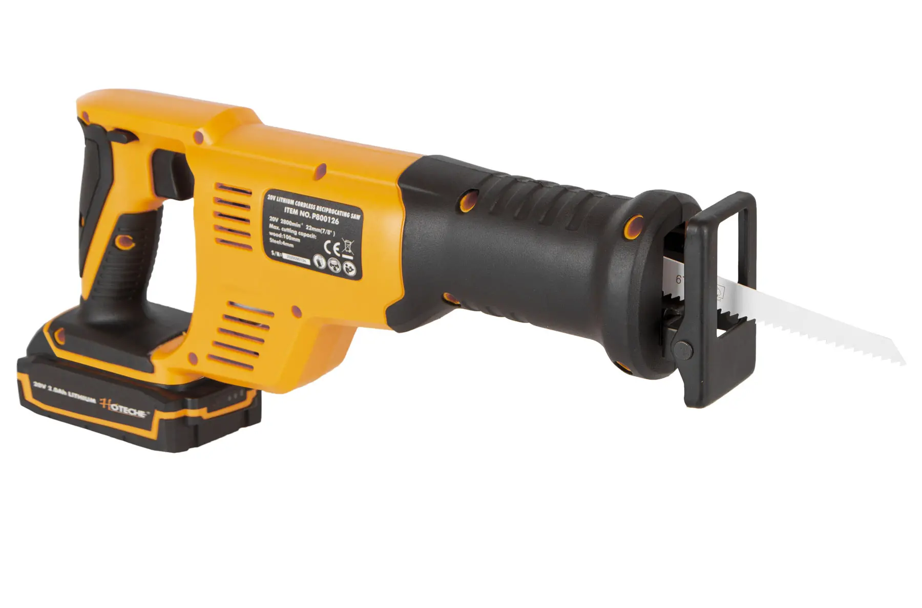 AKUmulátorová píla chvostovka od značky Hoteche napájaná akumulátorom 20 V 2 Ah.