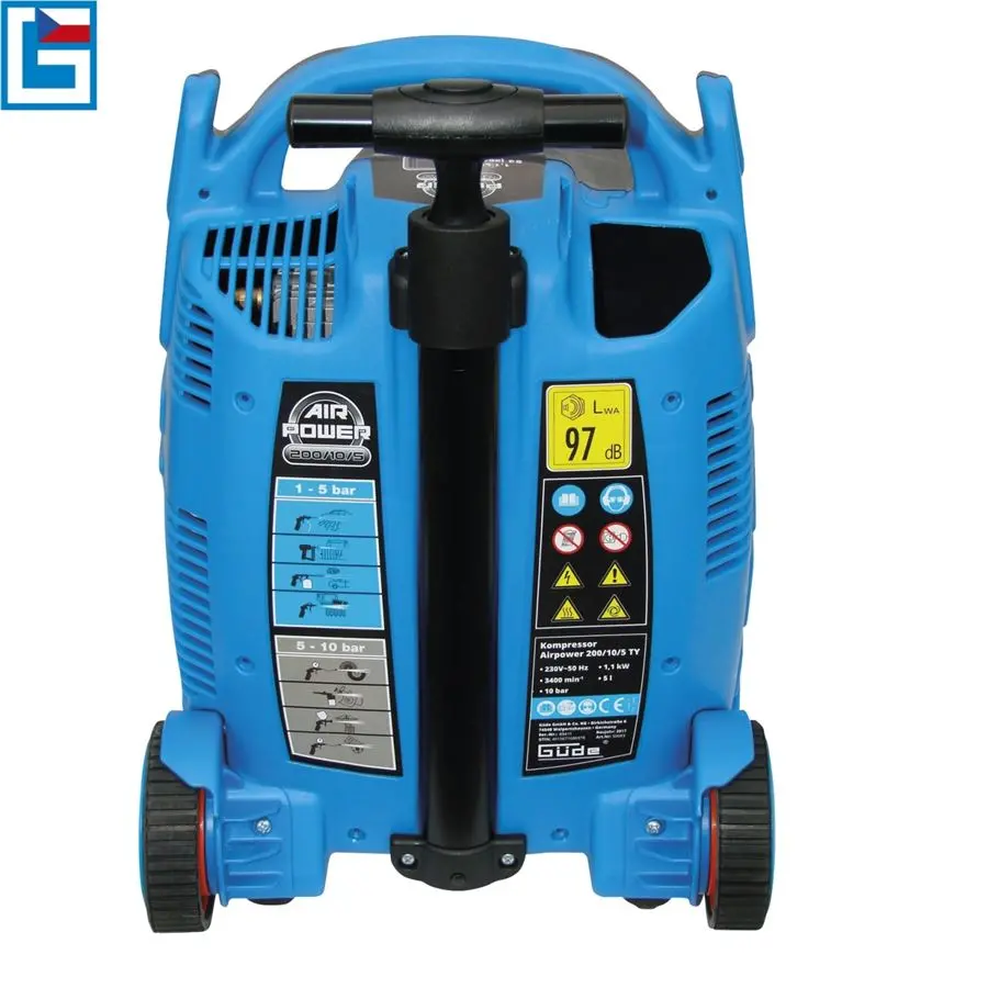 Vzduchový kompresor s 5 l tlakovou nádobou. Výkon motora 1,1 kW, max. výstupný tlak 10 bar. Trans...