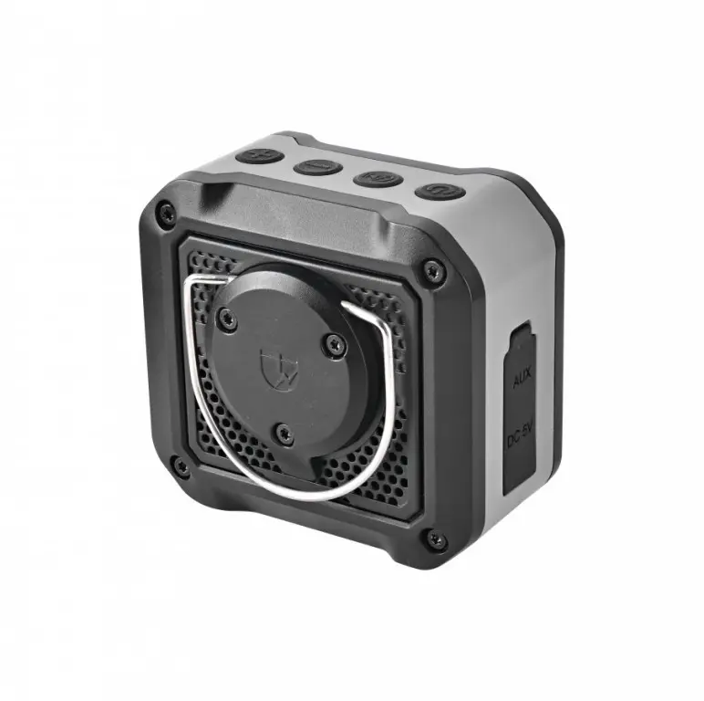 Tento malý praktický prenosný reproduktor je vodotesný (IP55). IP55 označenie znamená čiastočná odolnosť voči prachu a ochrana reproduktorov voči tryskajúcej vode.