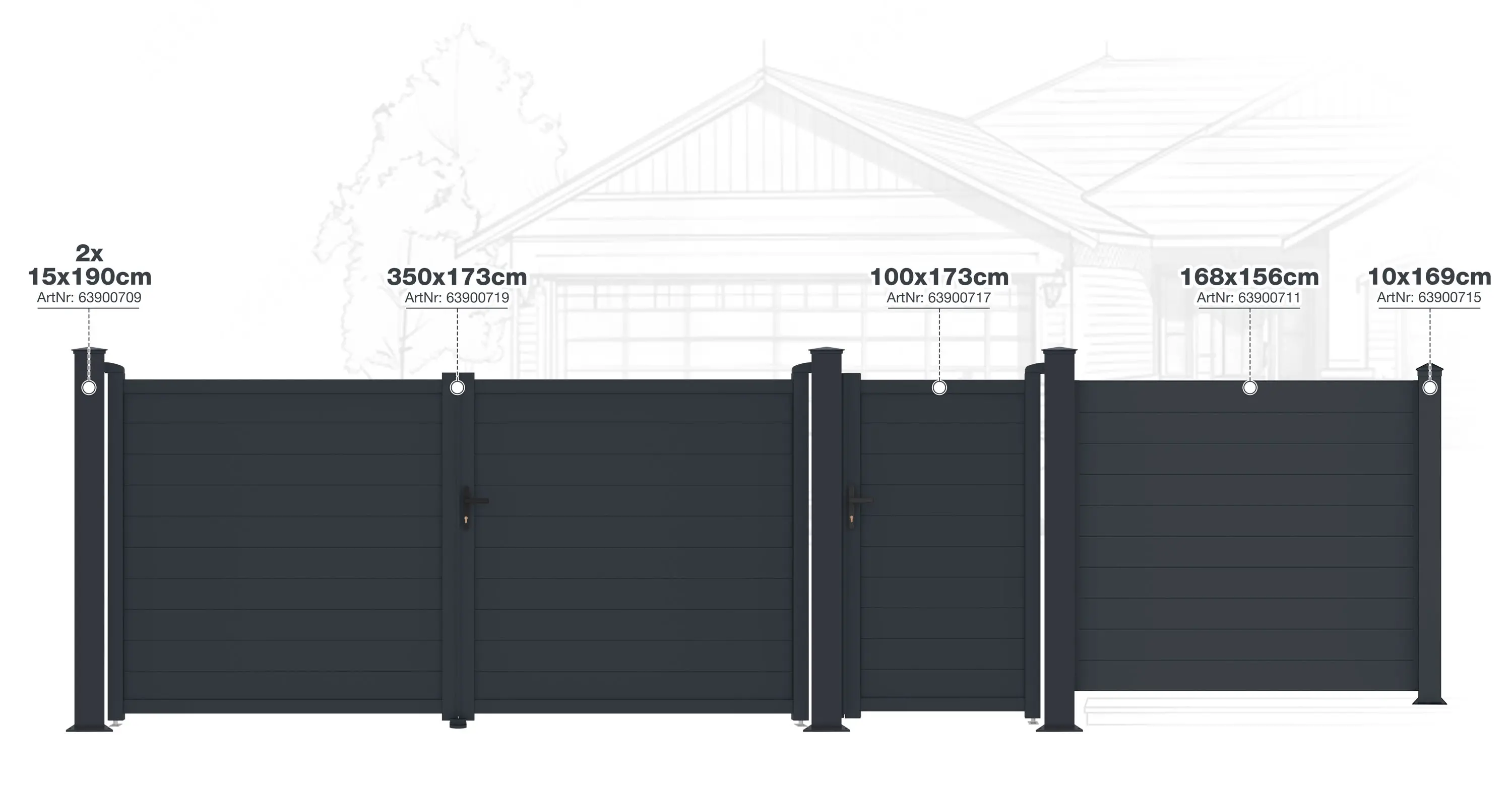 Prispôsobiť si takto na mieru môžete všetky diely plotových systémov G21 Orlando alebo Marion, či už ide o bránky, brány alebo plotové polia.