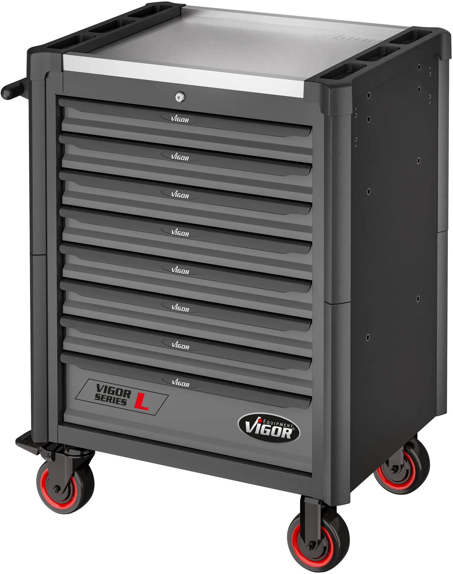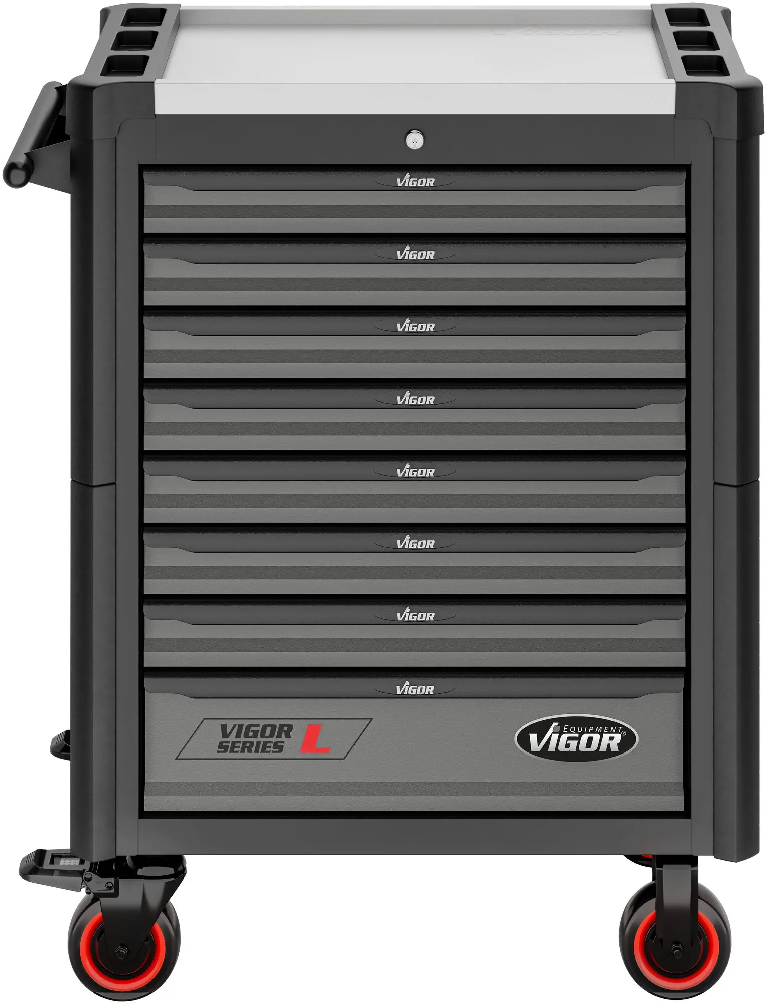 Pre zvýšenie bezpečnosti je každá zásuvka vybavená poistkou proti samovoľnému vysunutiu pri transporte a tiež sú zásuvky zabezpečené zámkom v hornej časti zboku, čím zabránite prístupu k náradiu nepovolaným osobám.