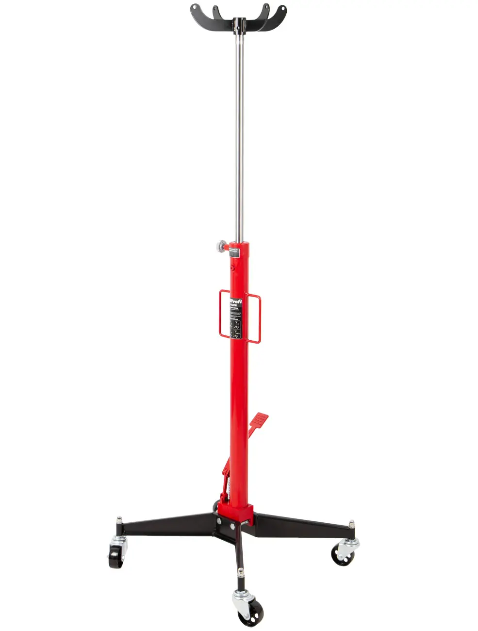 Zdvihák je vybavený nastaviteľnou opornou hlavou na presné nastavenie prevodovky a stabilnou základňou s kolieskami na jednoduchý pohyb po dielni.