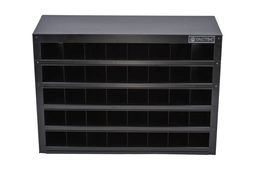 Kovový organizér s práškovým lakováním. Rozmery okienok: 100 x 85 mm. 40 okienok.