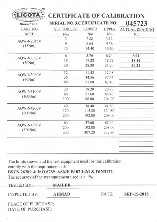 Momentový kľúč LICOTA 1/4" s certifikátom, 6-30 Nm, 300 mm - LIN2030