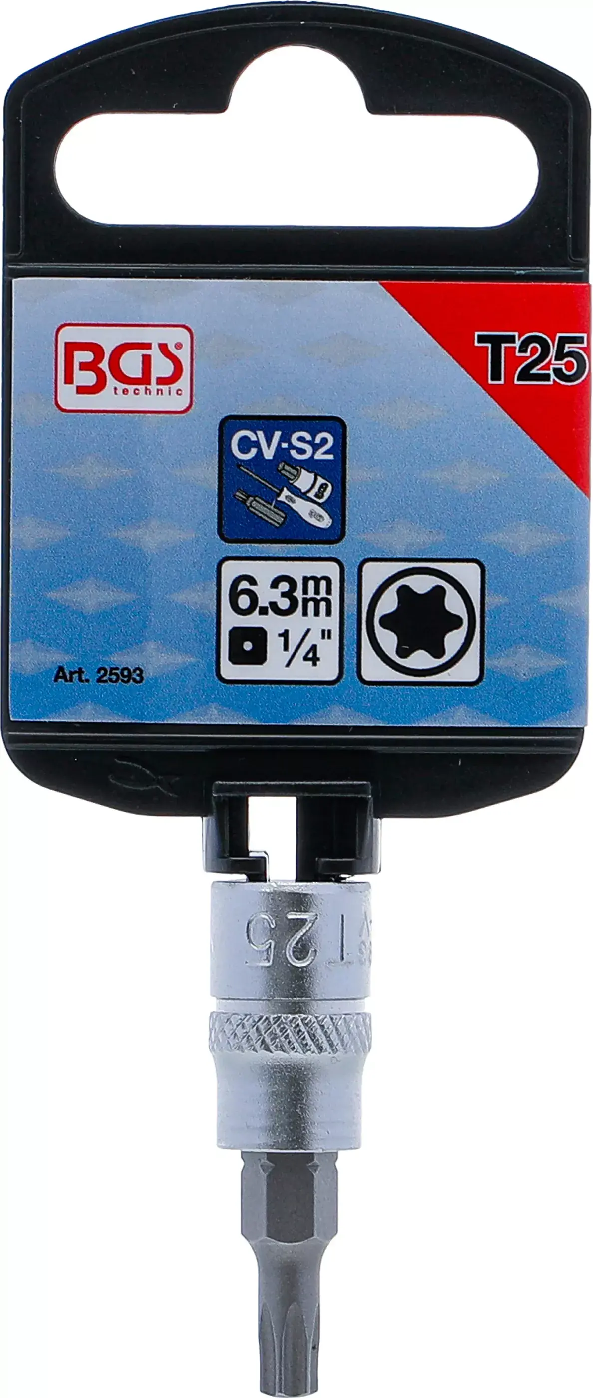 Nástrčná hlavica s T-profilom (Torx) a 1/4" štvorhranom vhodná na prácu so skrutkami typu Torx veľkosti T25.