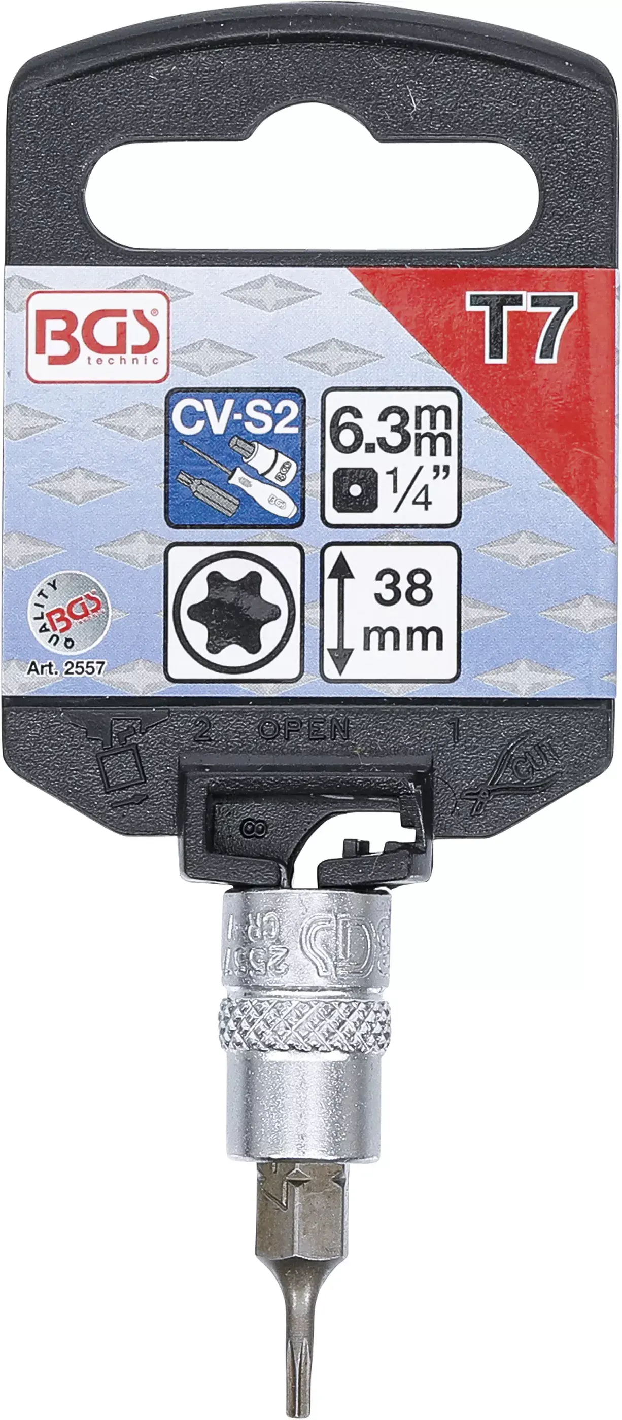 Nástrčná hlavica s T-profilom (Torx) a 1/4" štvorhranom vhodná na prácu so skrutkami typu Torx veľkosti T7.
